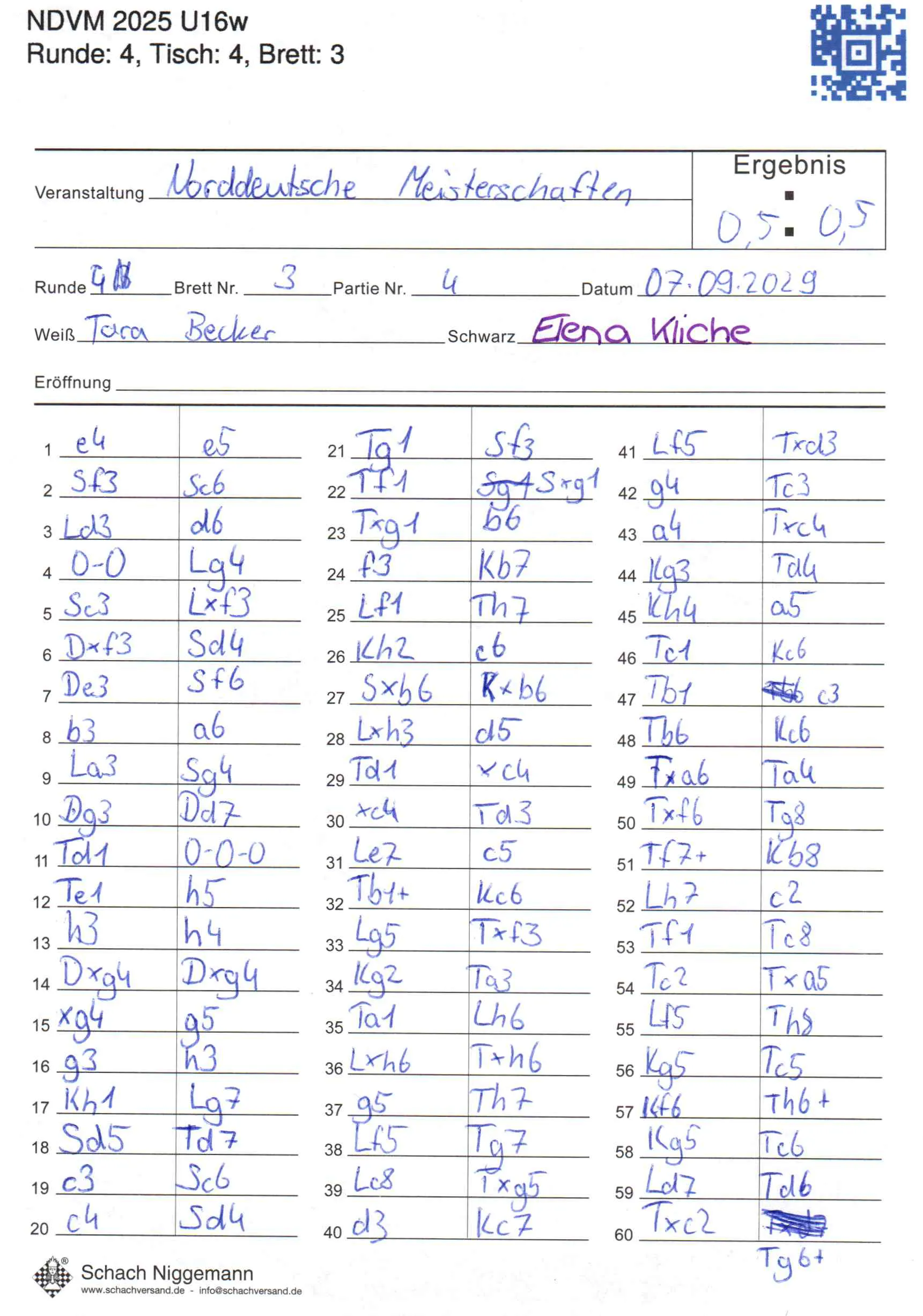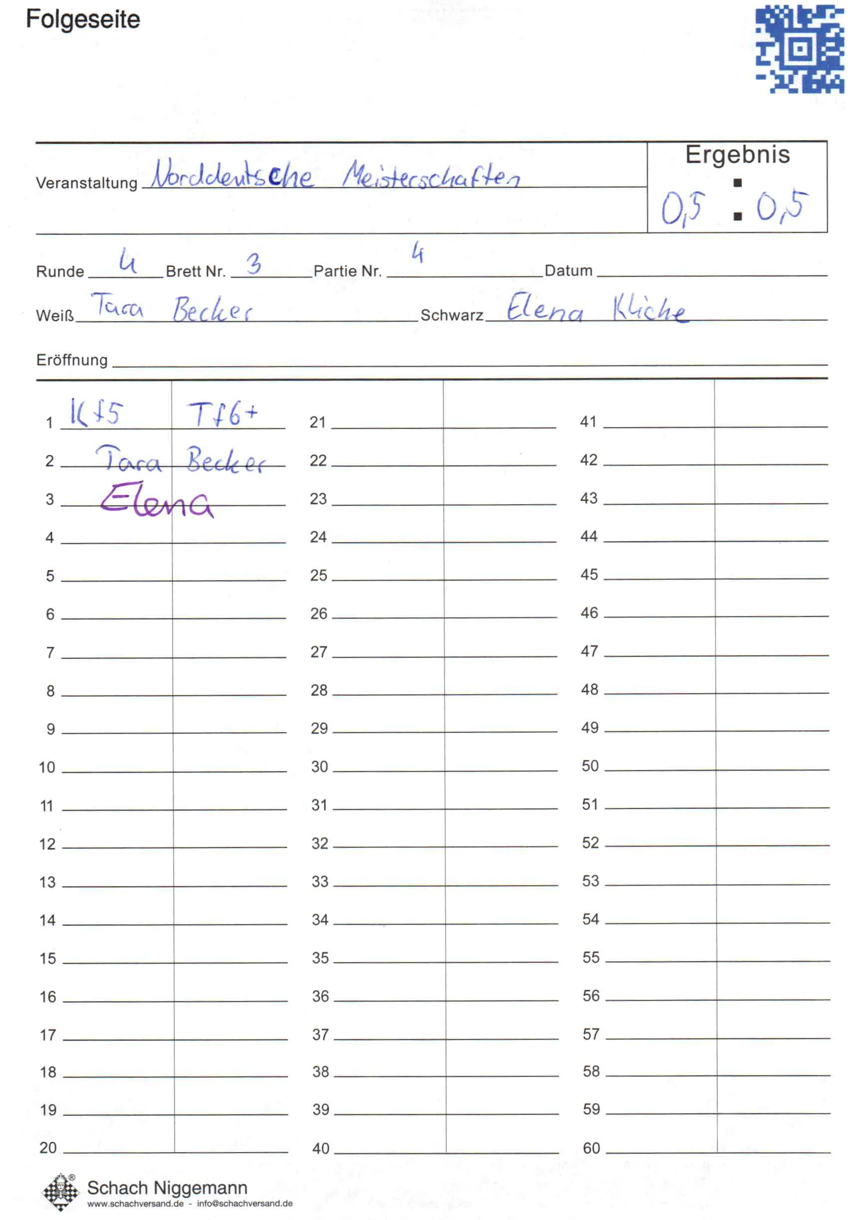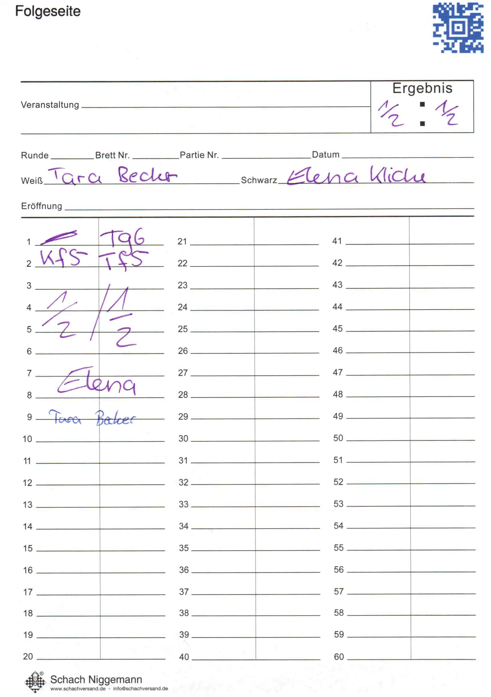 | Weiß: | Becker, Tara | Schwarz: | Kliche, Elena |