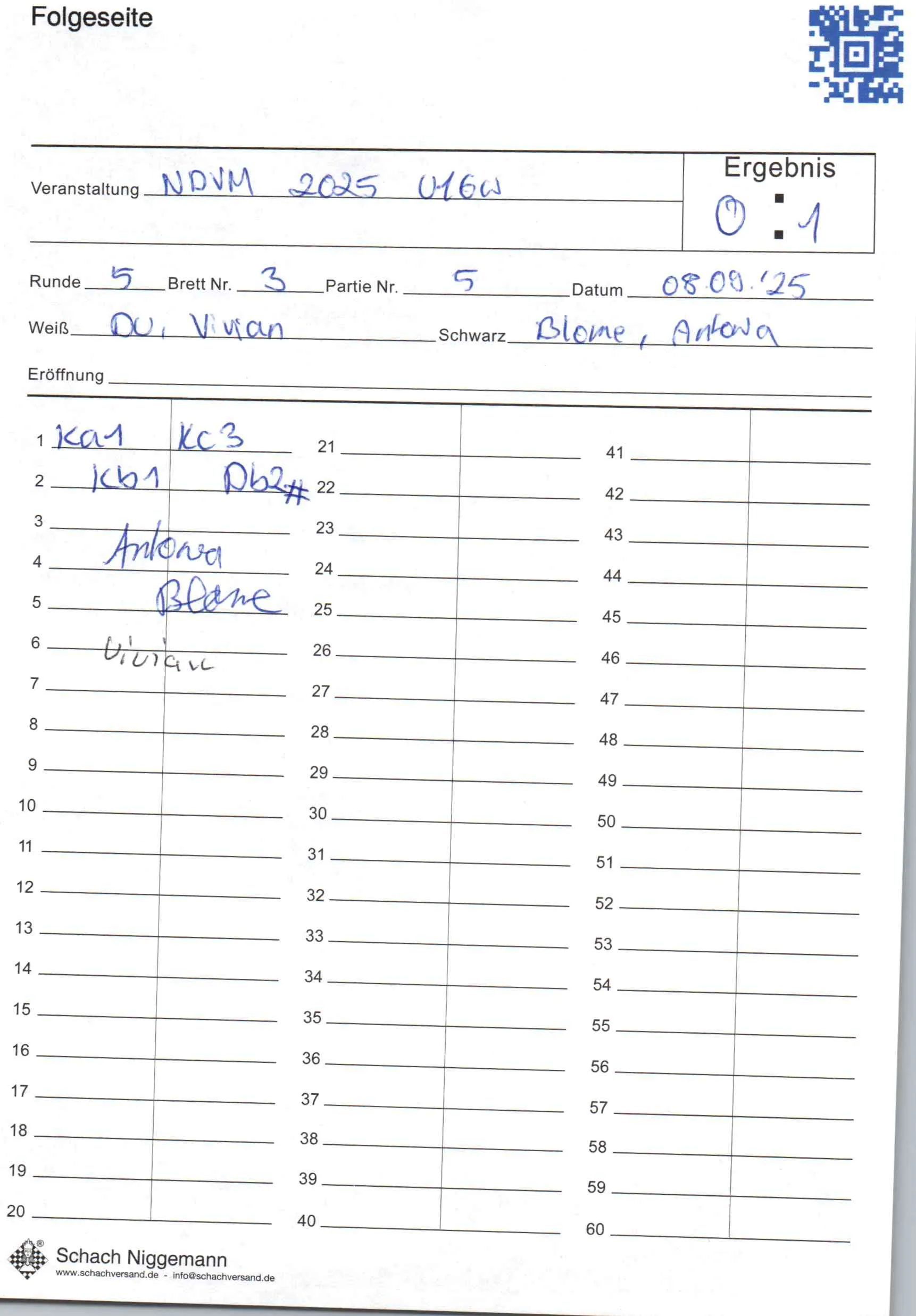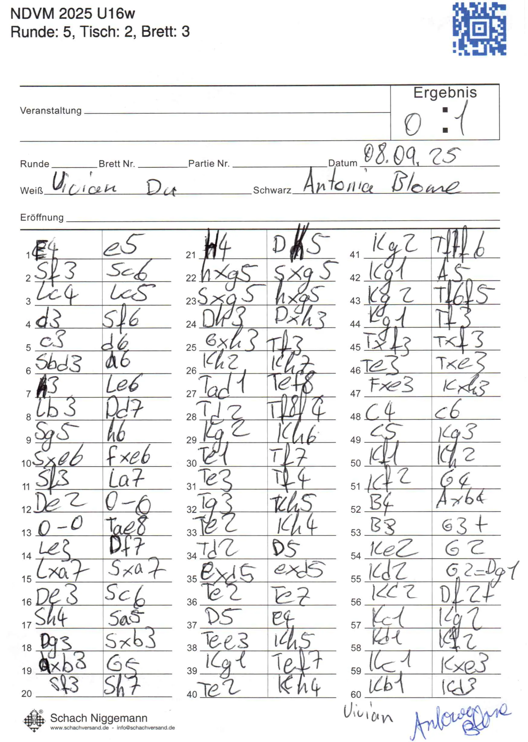 | Weiß: | Du, Vivian | Schwarz: | Blome, Antonia |