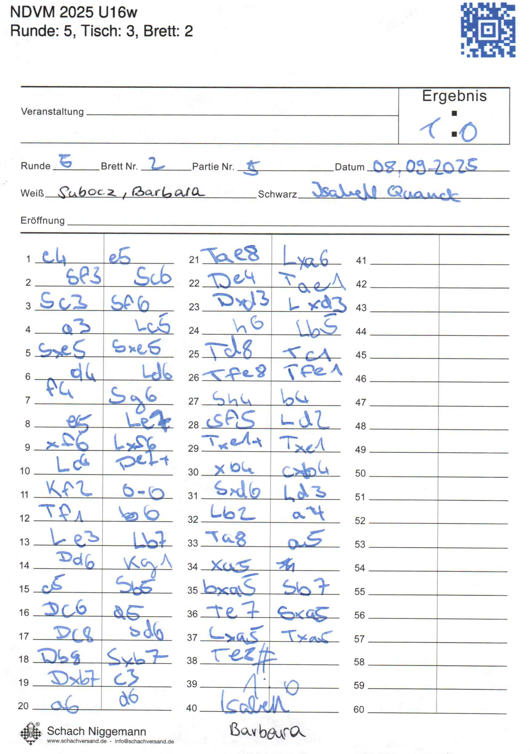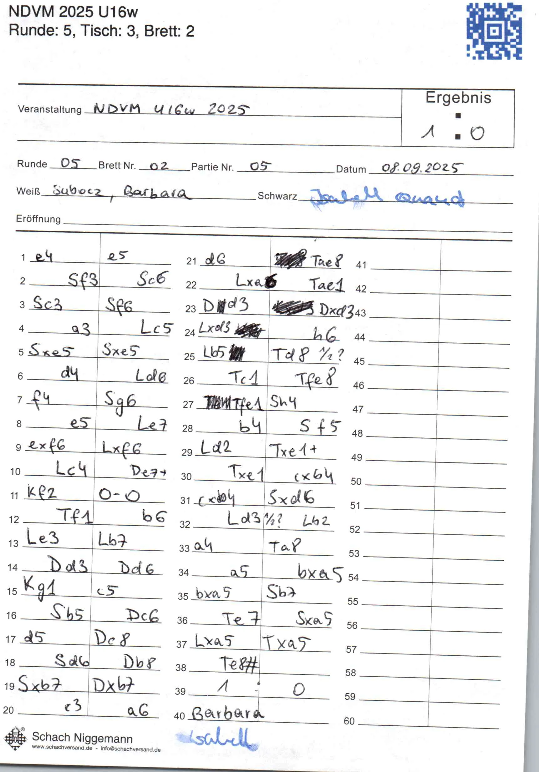 | Weiß: | Subocz, Barbara | Schwarz: | Quauck, Isabell |