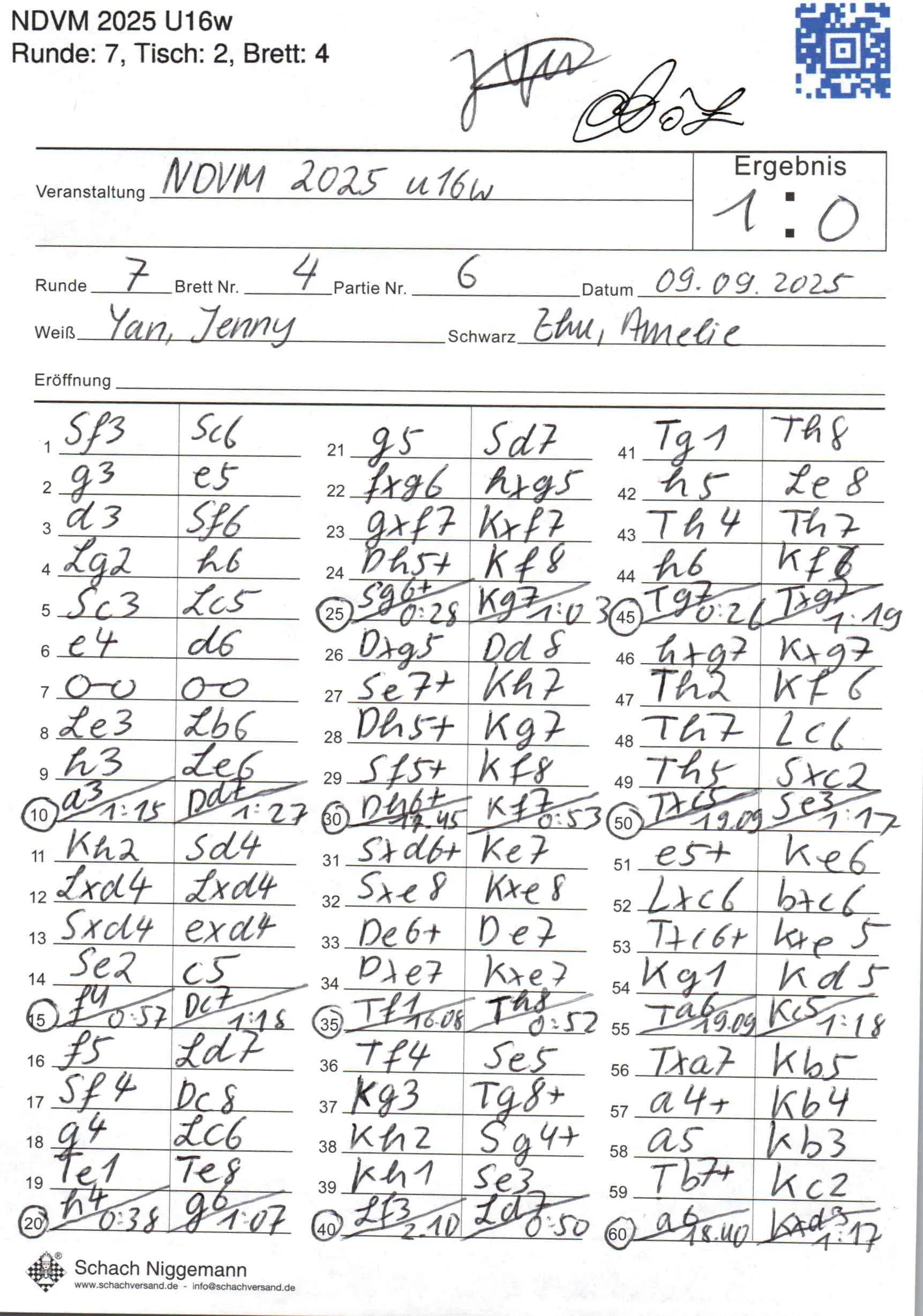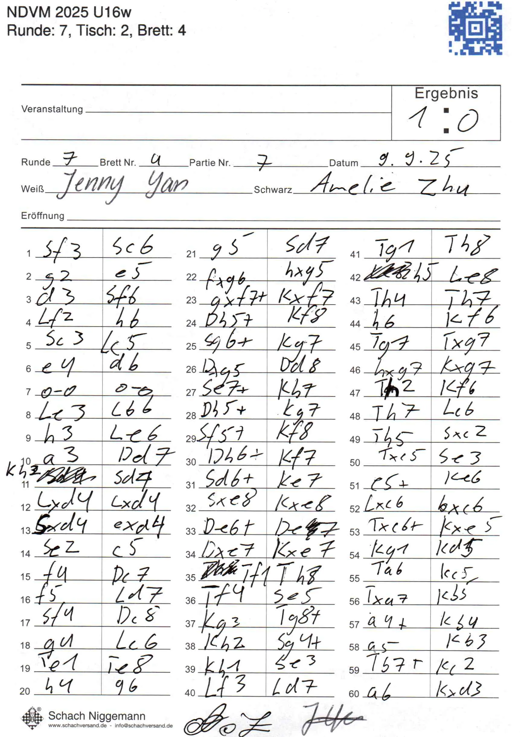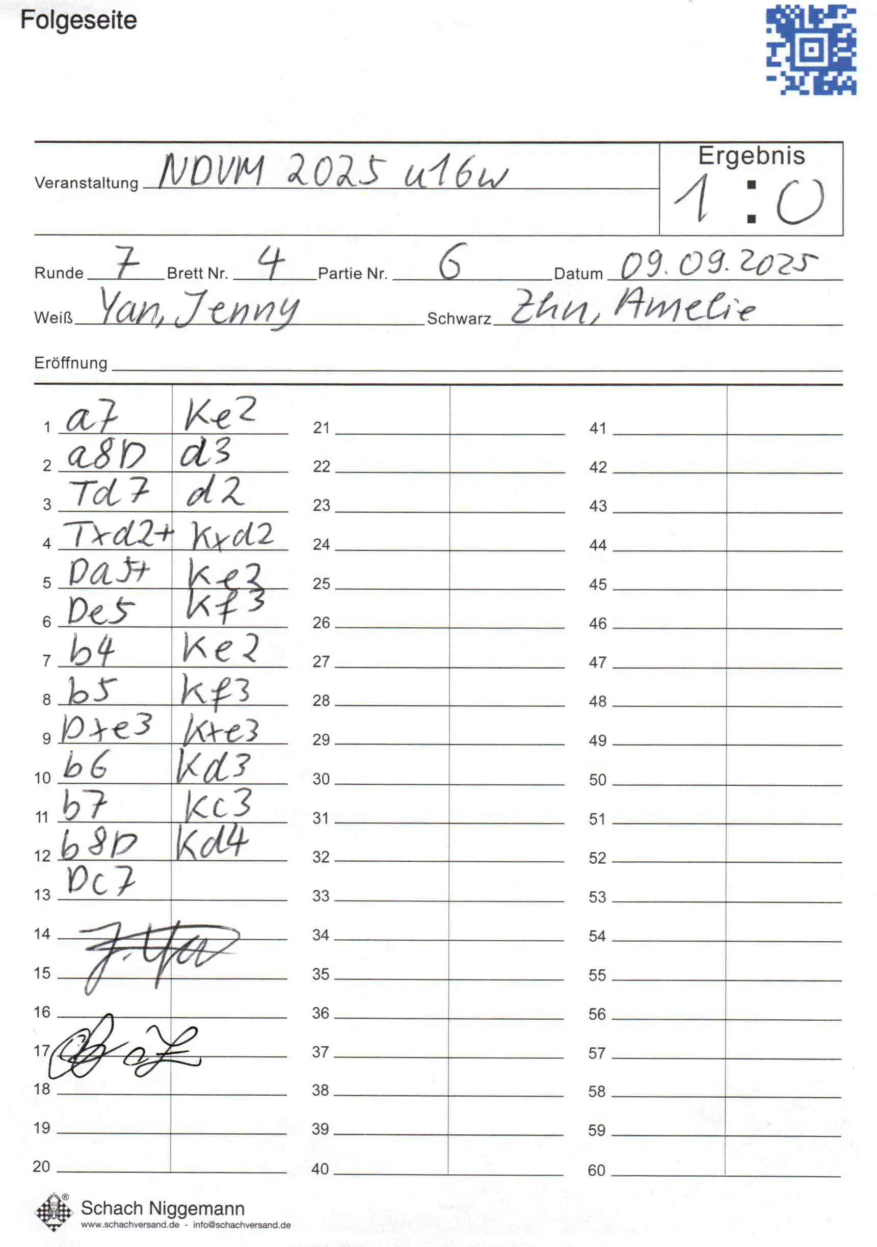 | Weiß: | Yan, Jenny | Schwarz: | Zhu, Amelie |