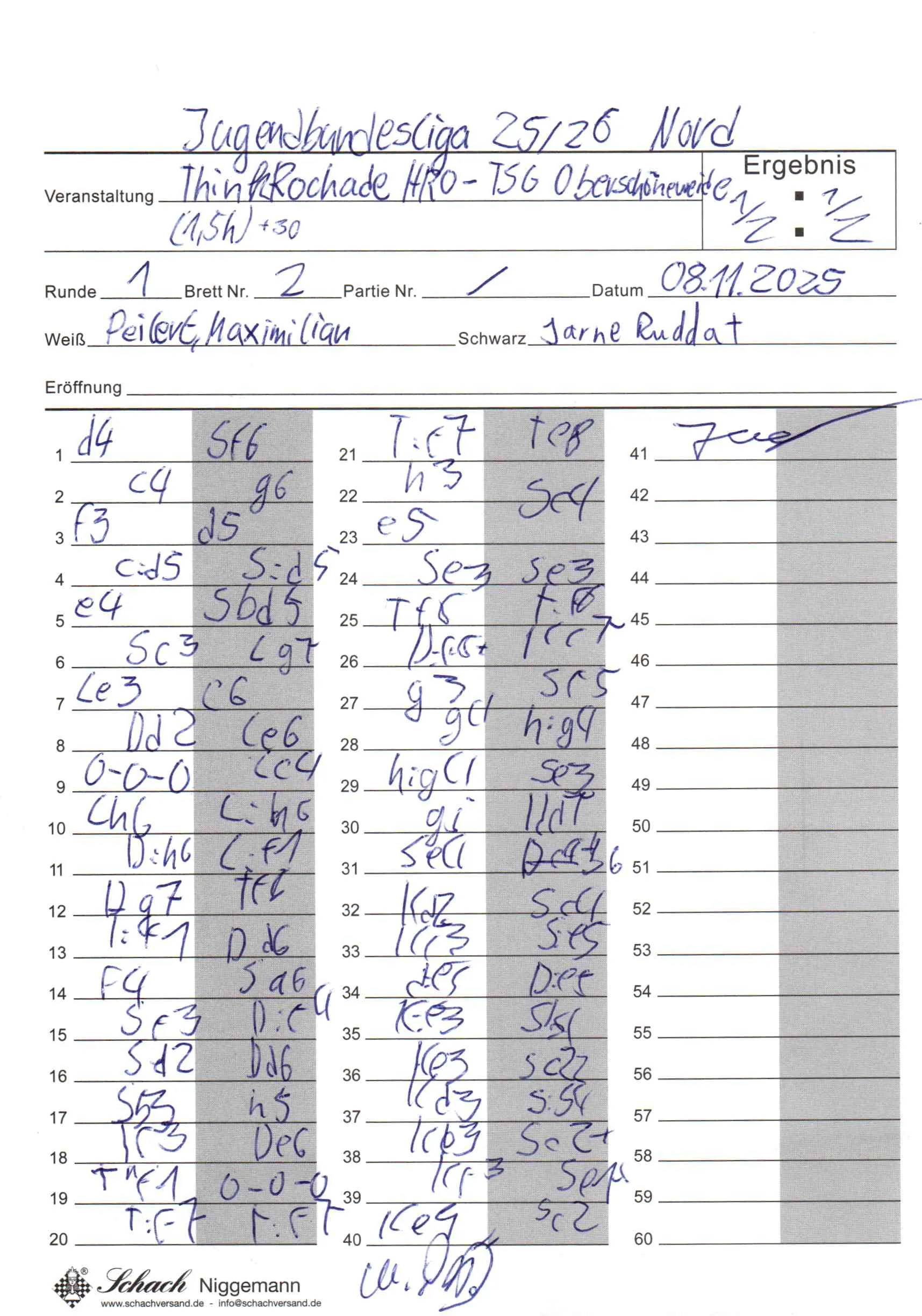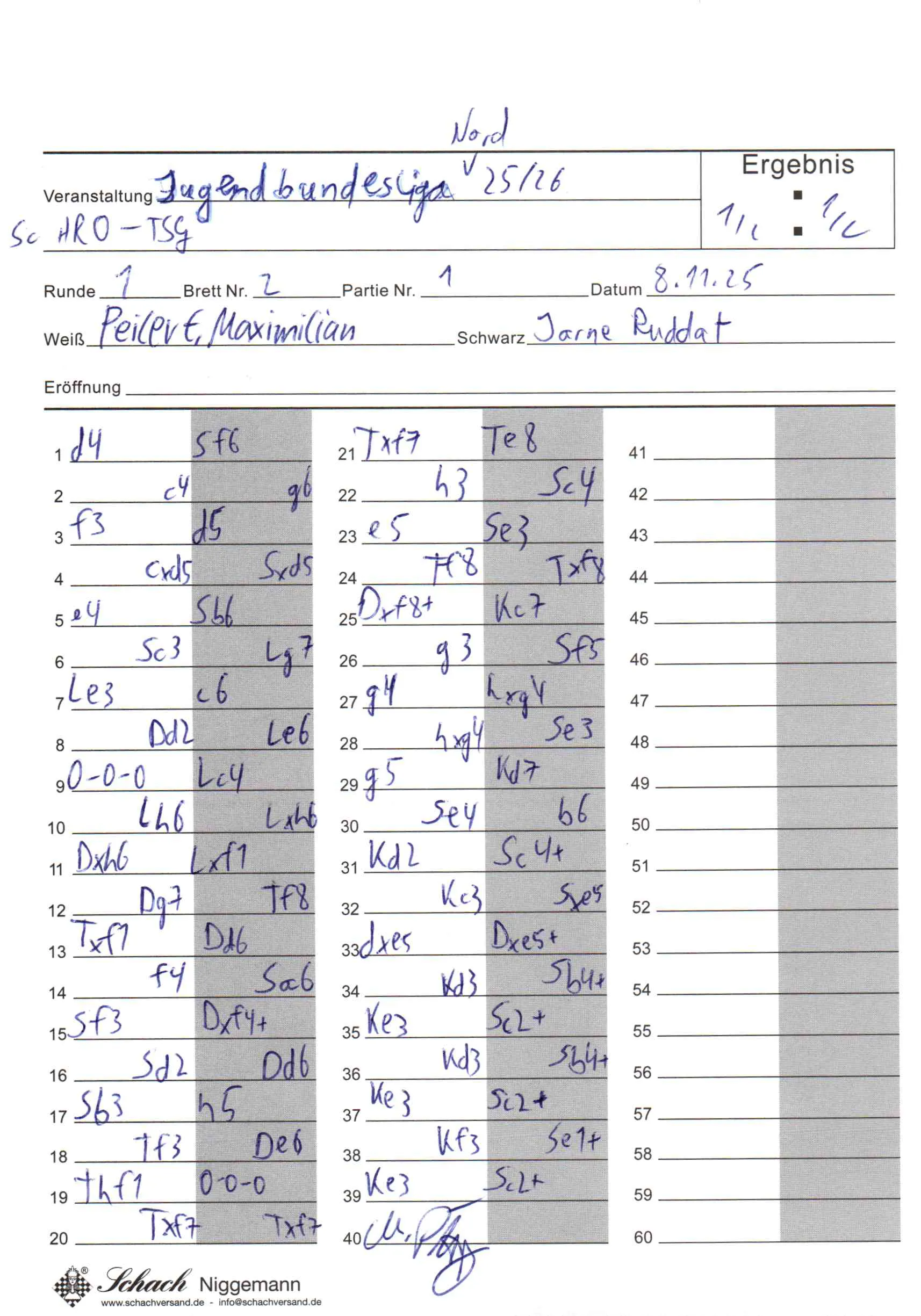 | Weiß: | Peilert, Maximilian | Schwarz: | Ruddat, Jarne |