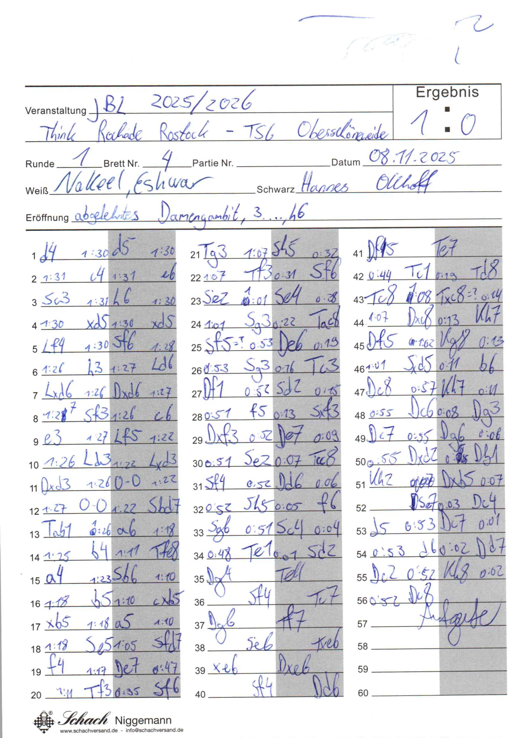 | Mannschaft: | Think Rochade - SC HRO | Mannschaft: | TSG Oberschöneweide |