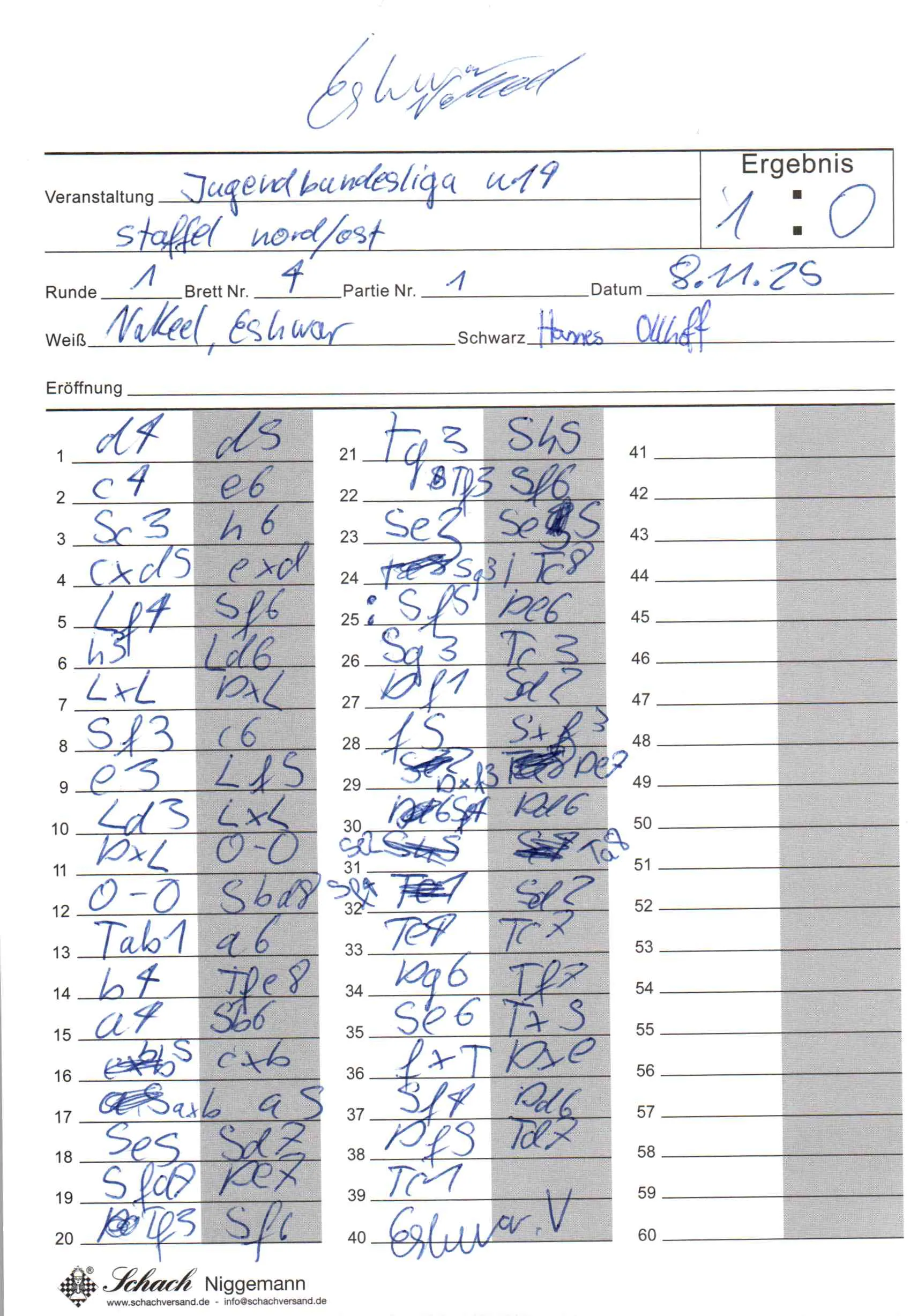 | Weiß: | Vakeel, Eshwar | Schwarz: | Ollhoff, Hannes |