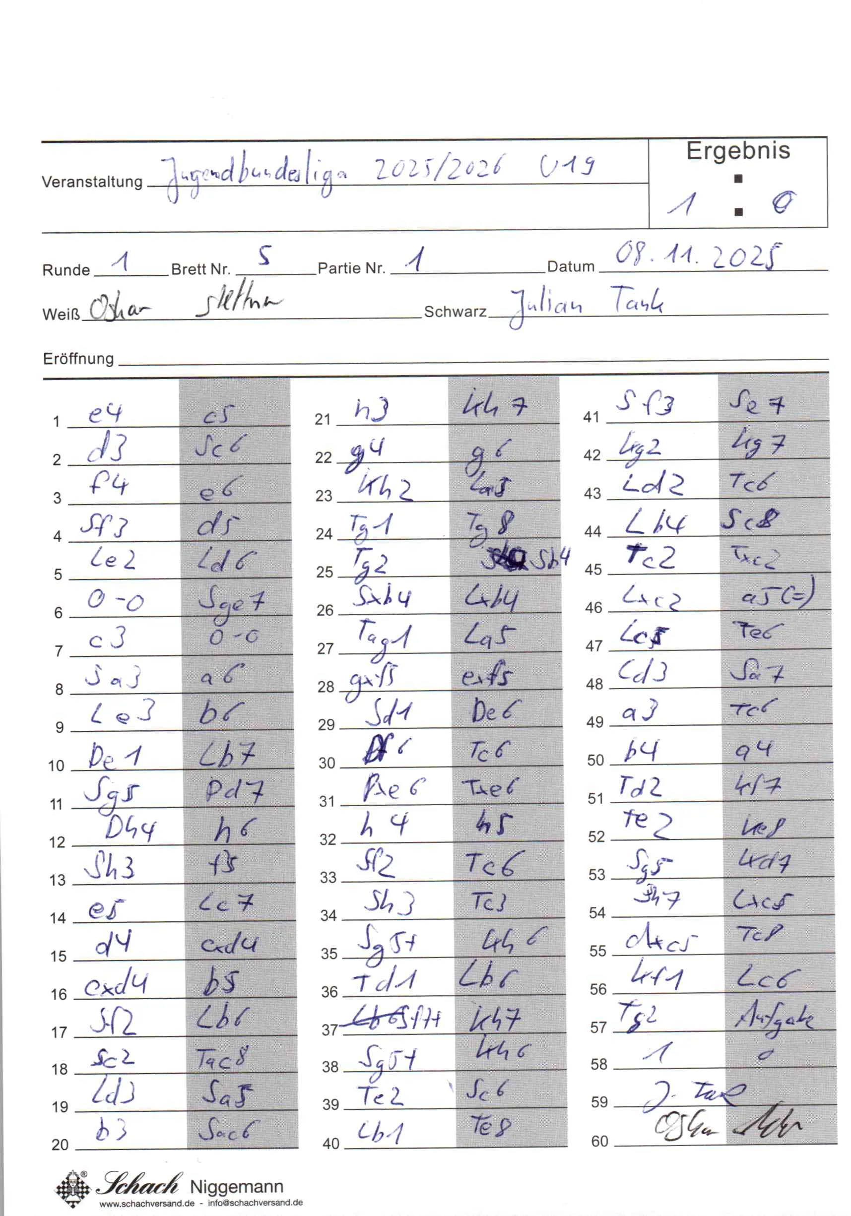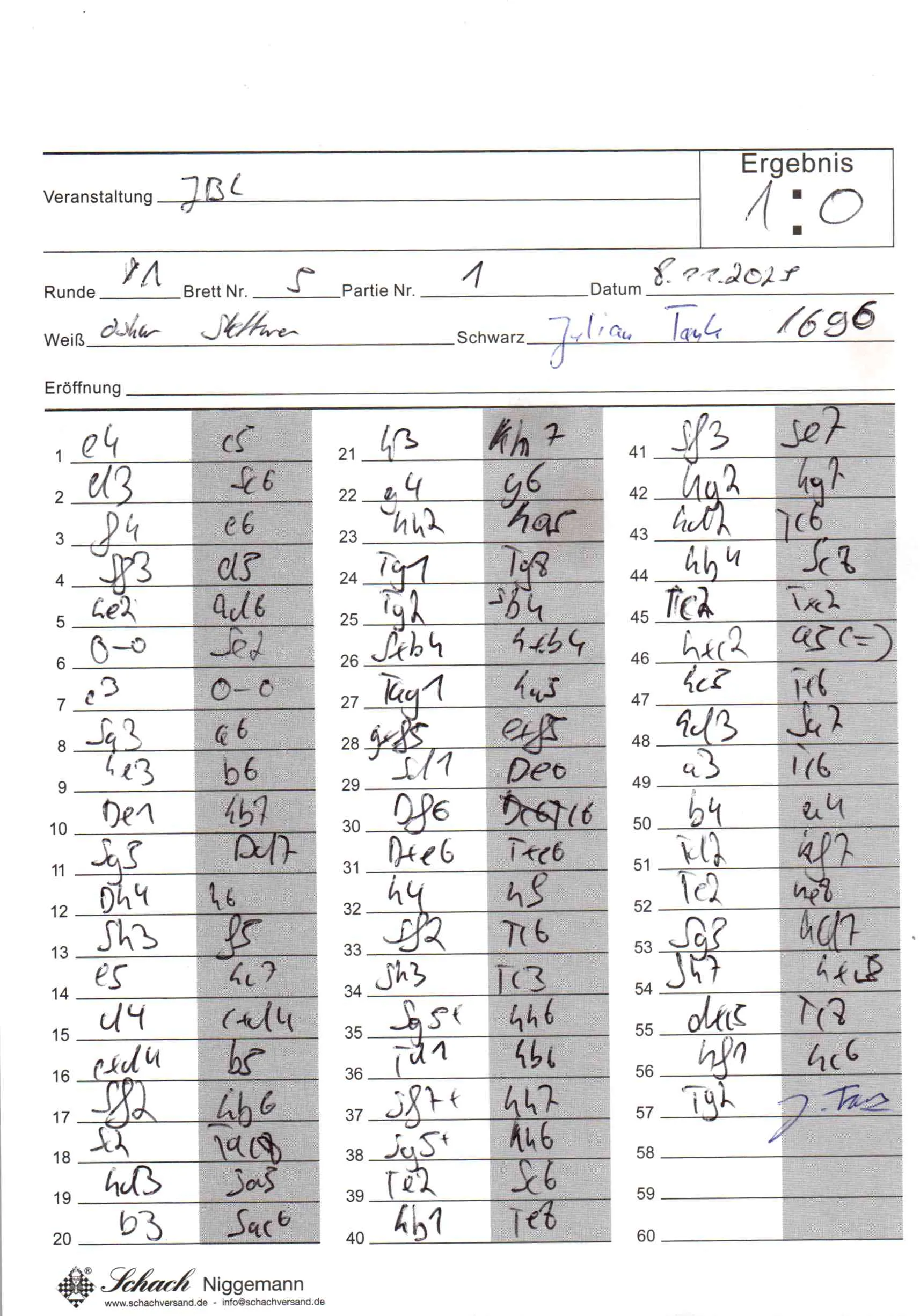 | Weiß: | Stettner, Oskar | Schwarz: | Tank,Julian |