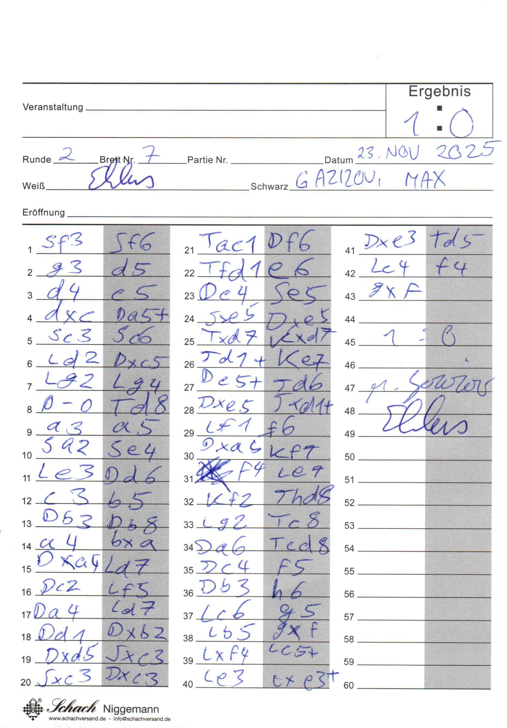 | Weiß: | Ehlers,Michael | Schwarz: | Gazizov,Max |
