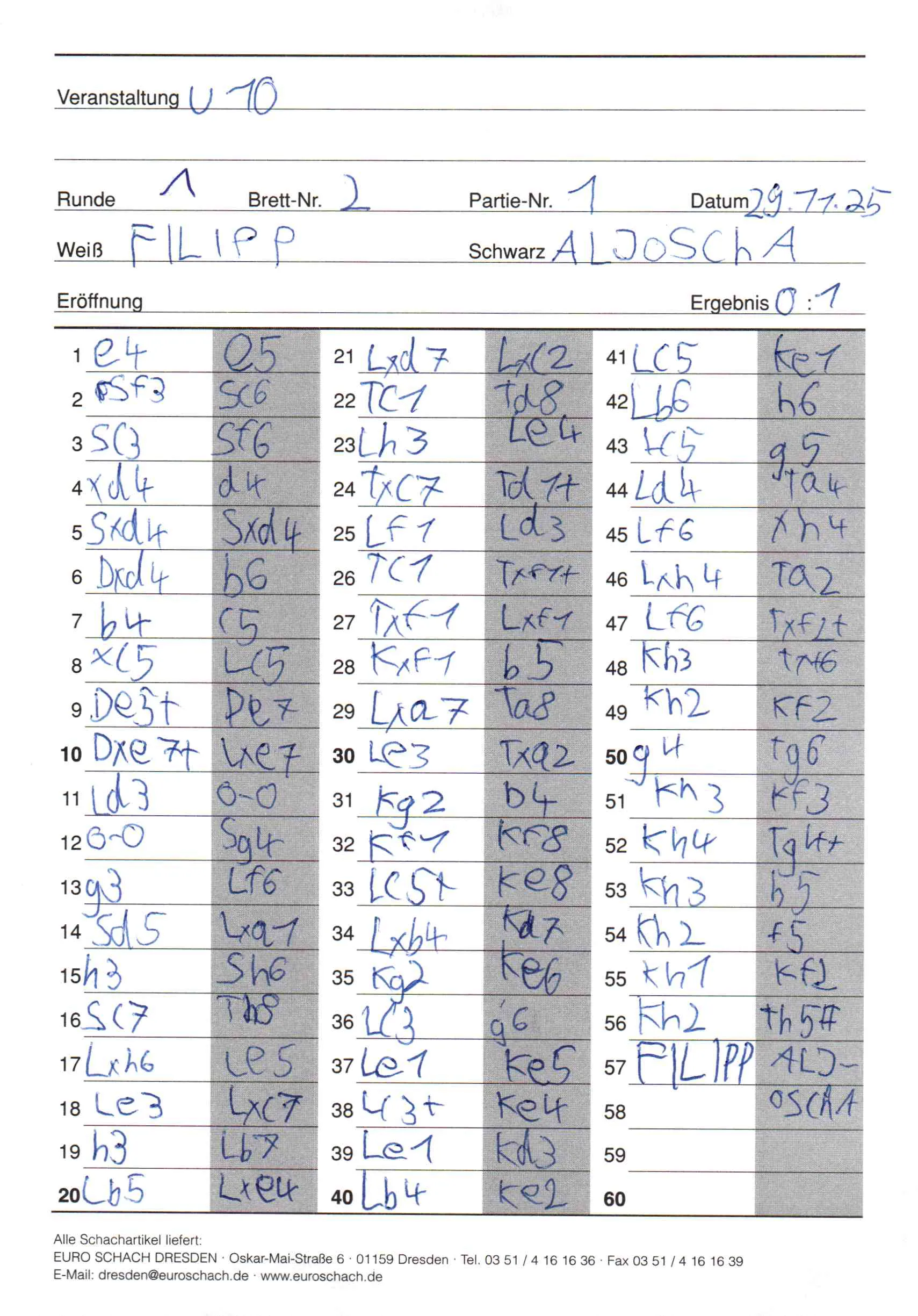 | Weiß: | Rokhinson, Filipp | Schwarz: | Rokhinson, Aljoscha |