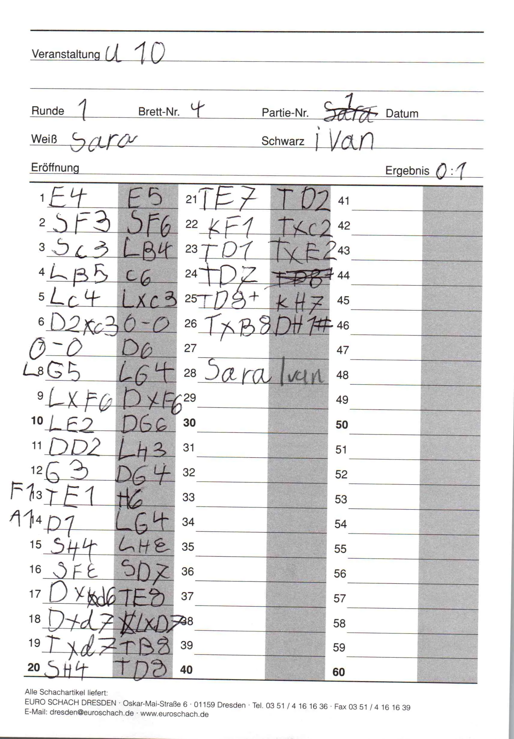 | Weiß: | Zelenin, Sara | Schwarz: | Doichev, Ivan |