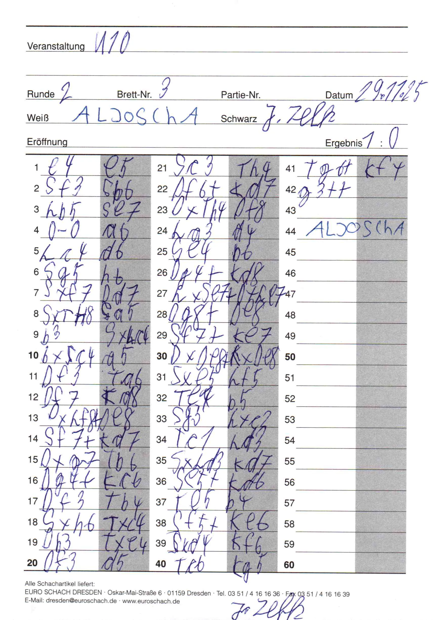 | Weiß: | Rokhinson, Aljoscha | Schwarz: | Zelk, Jannik Elias |