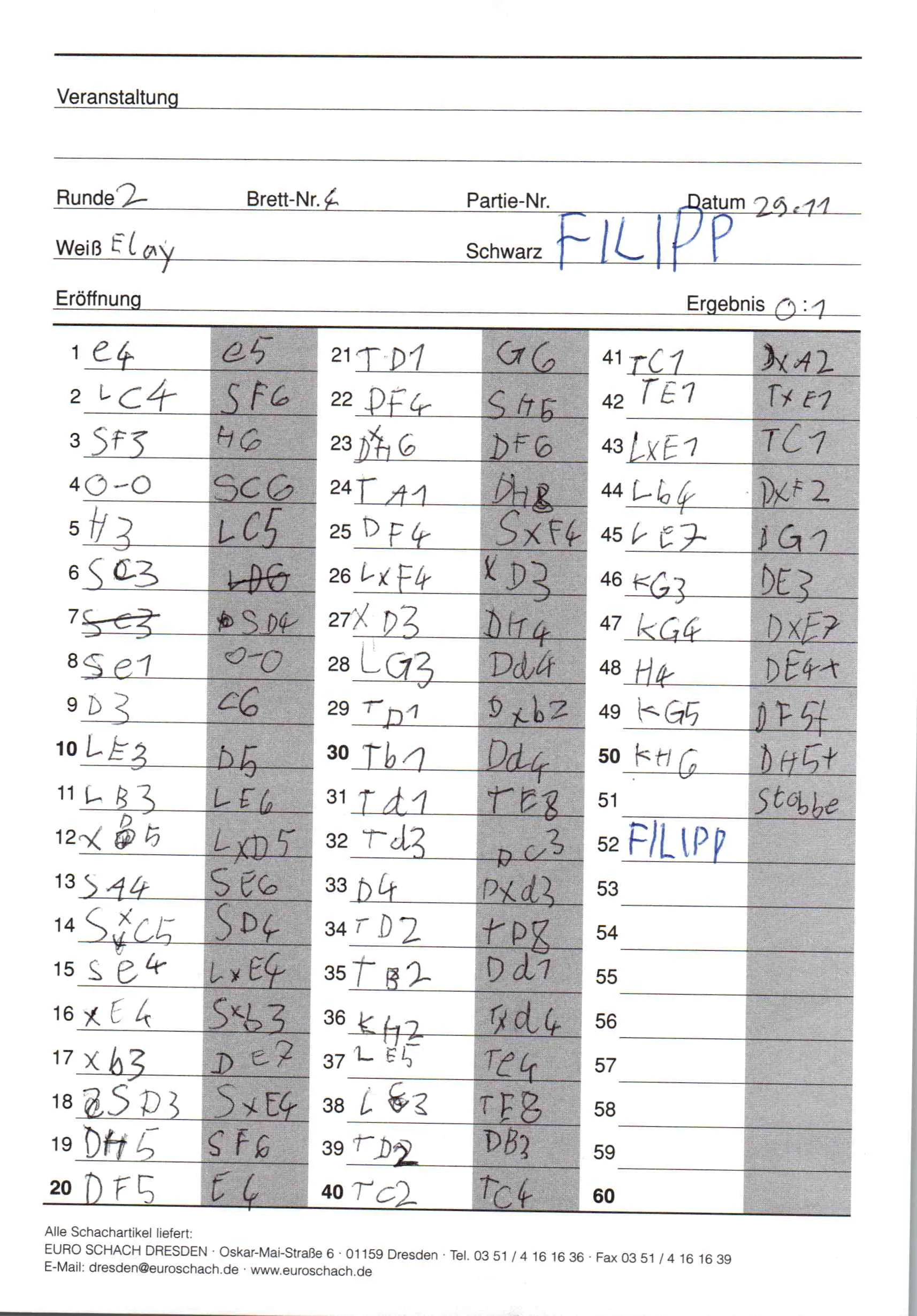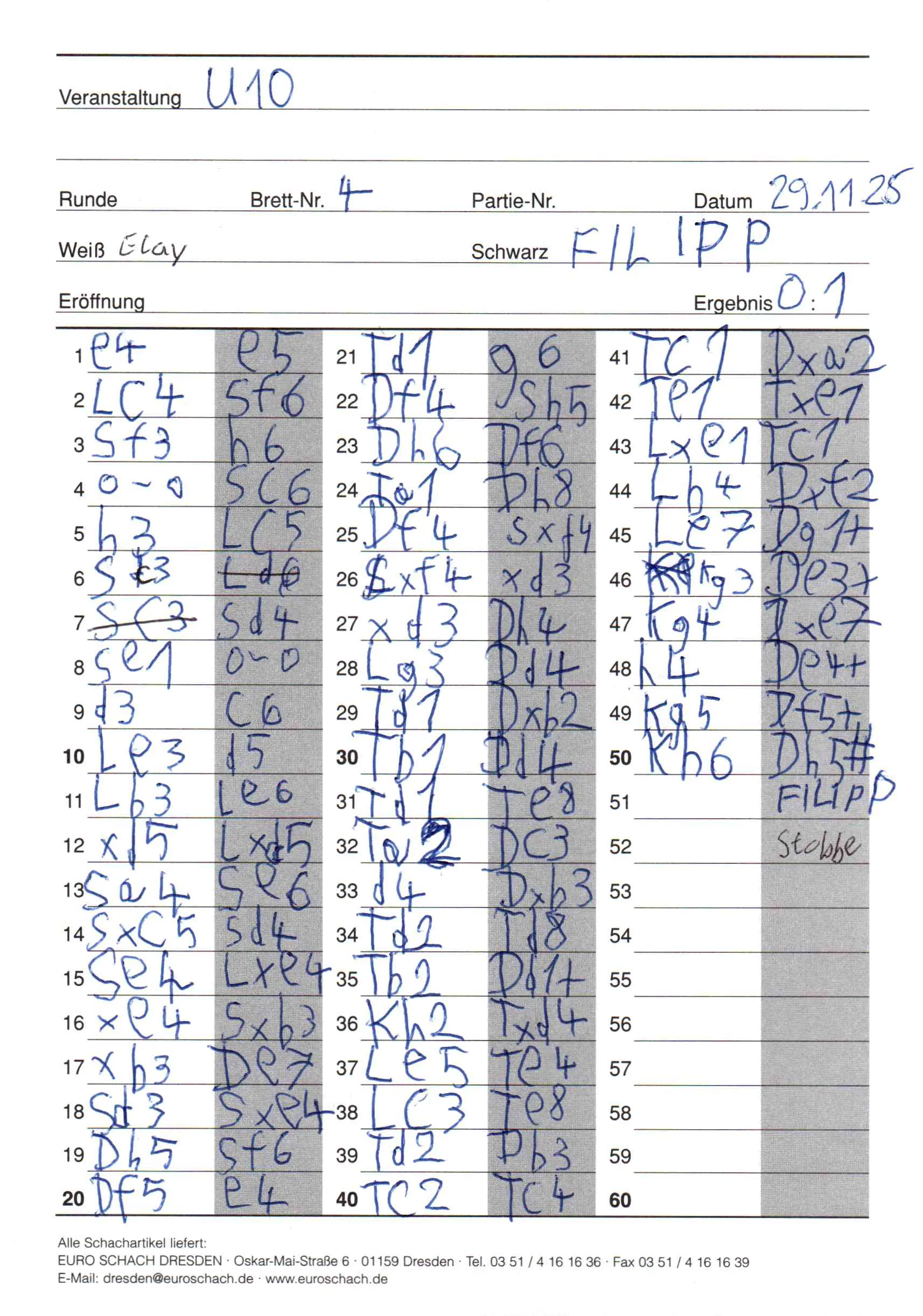 | Weiß: | Stobbe, Elay | Schwarz: | Rokhinson, Filipp |