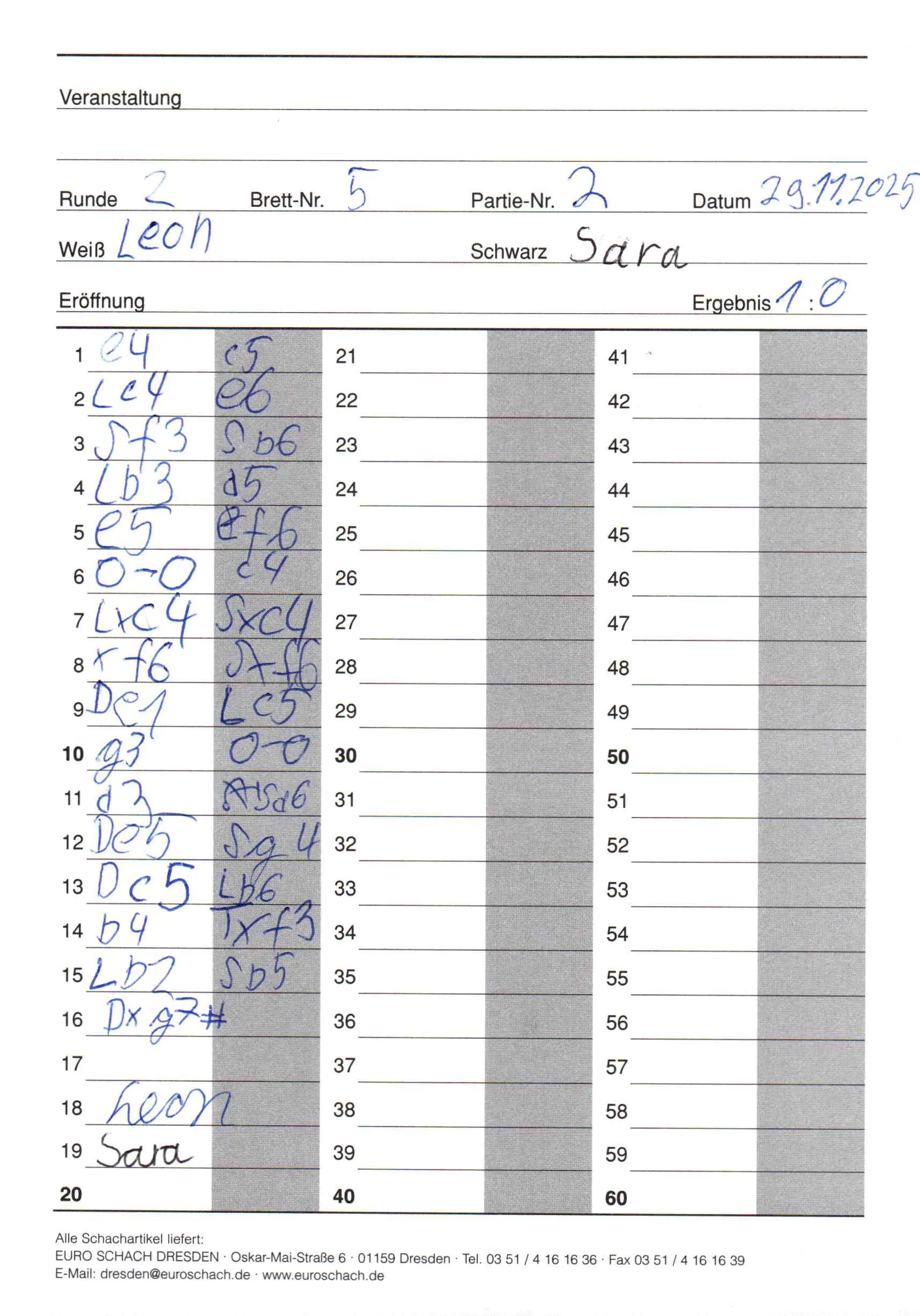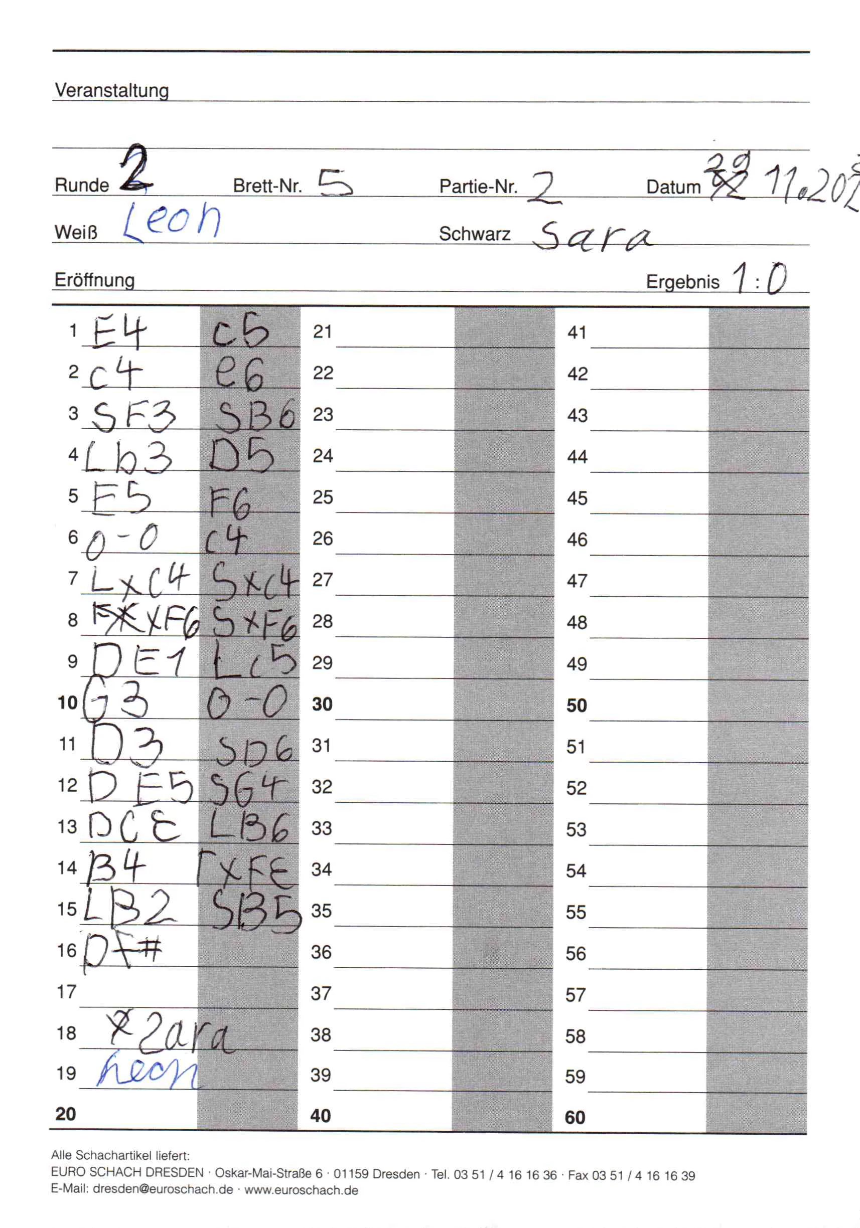 | Weiß: | Strobel, Leon | Schwarz: | Zelenin, Sara |