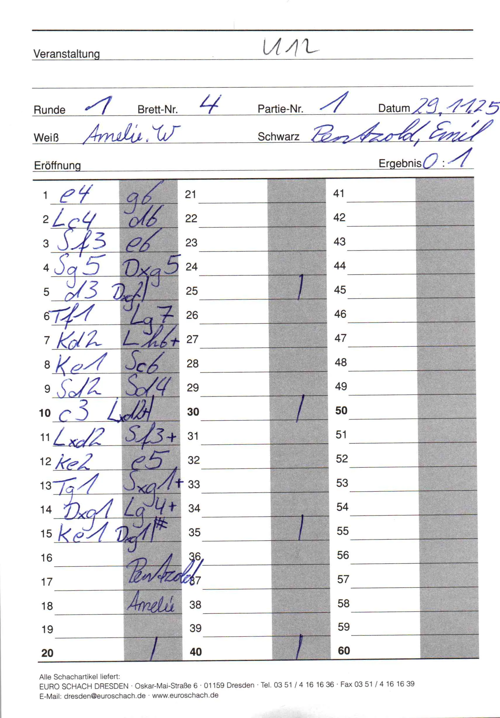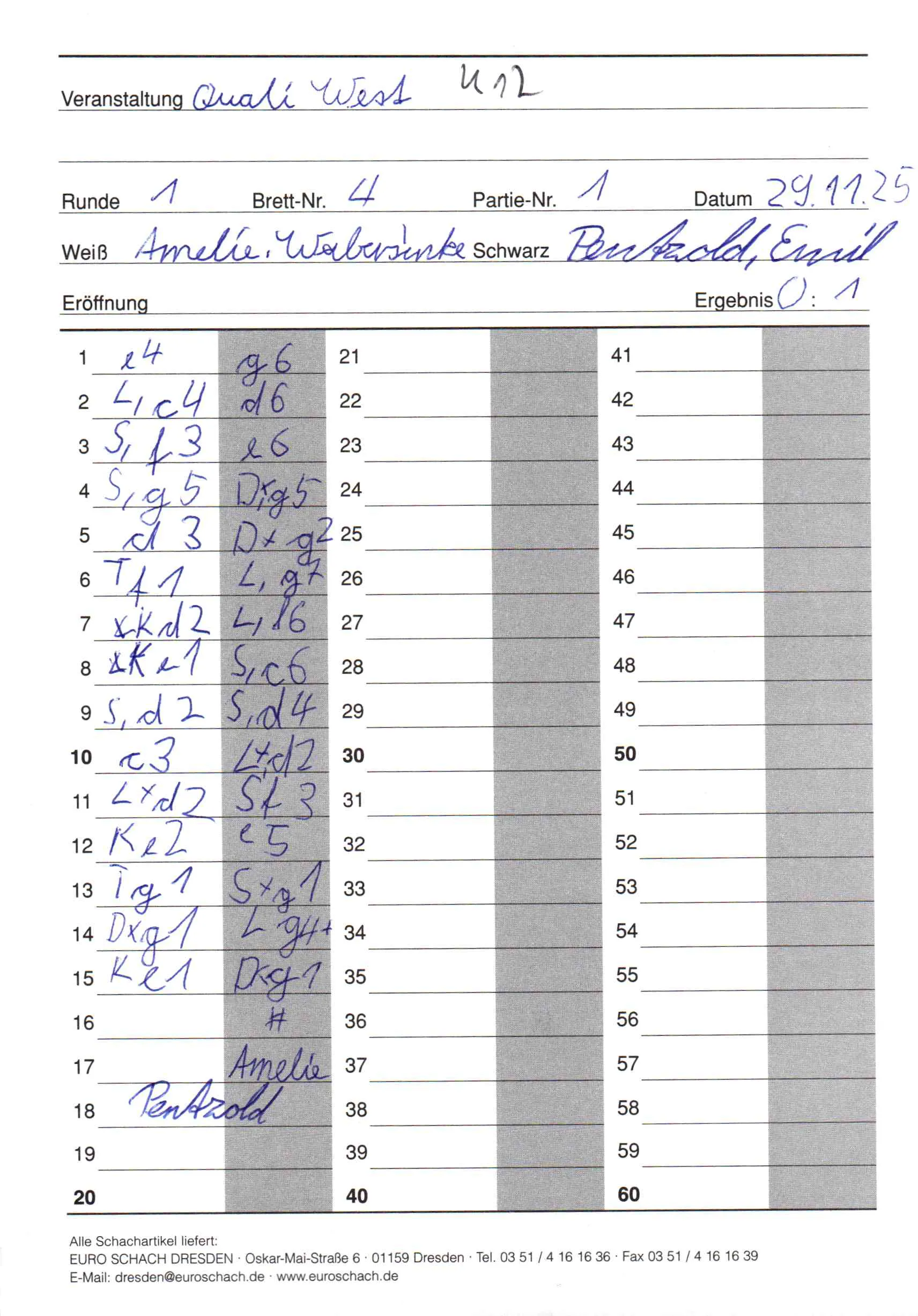 | Weiß: | Wabersinke, Amelie | Schwarz: | Pentzold, Emil |
