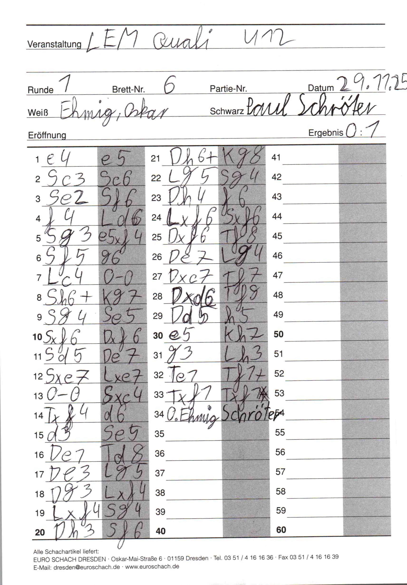 | Weiß: | Ehmig, Oskar | Schwarz: | Schröter, Paul |