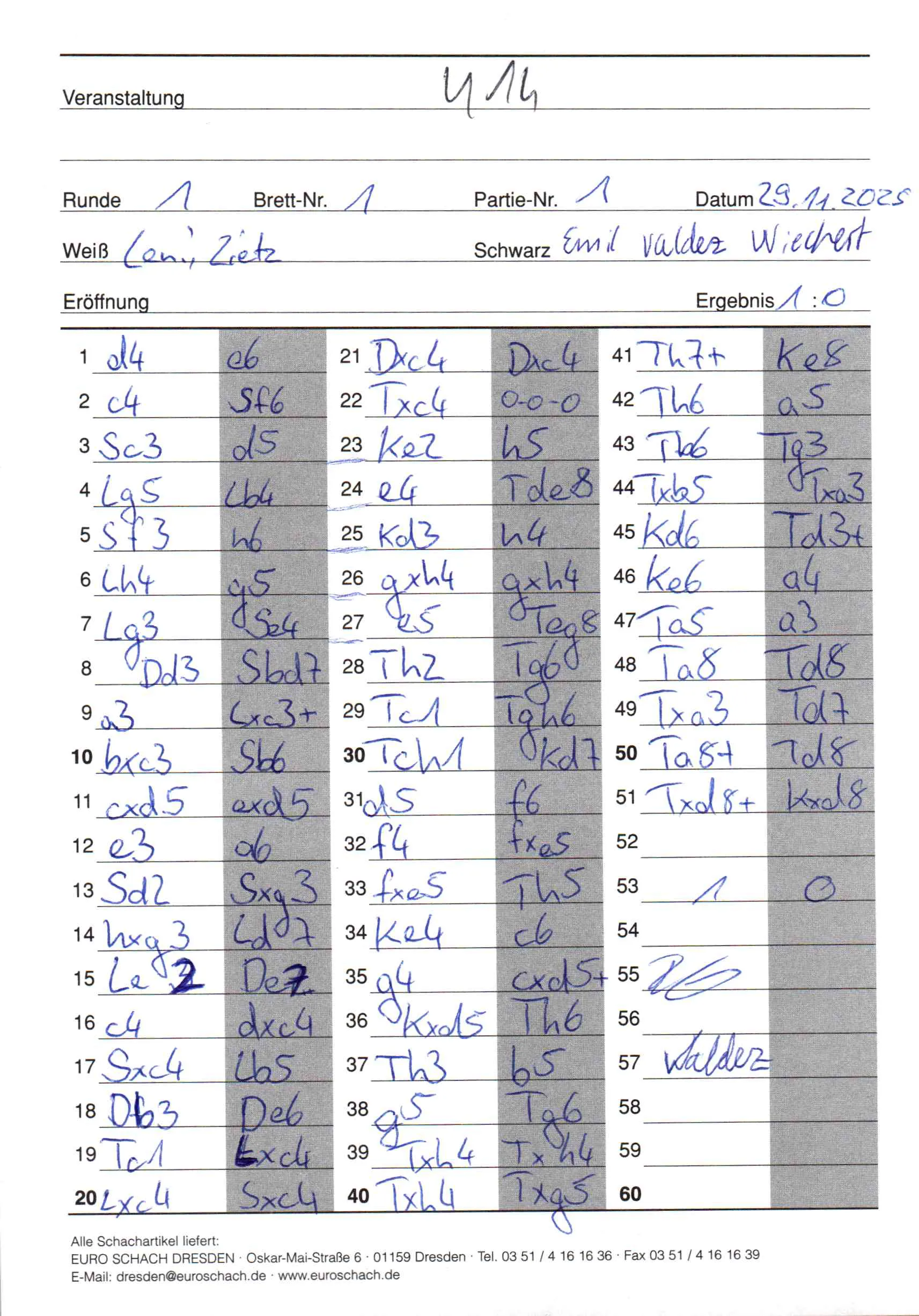 | Weiß: | Zietz, Leni | Schwarz: | Wiechert, Emil |