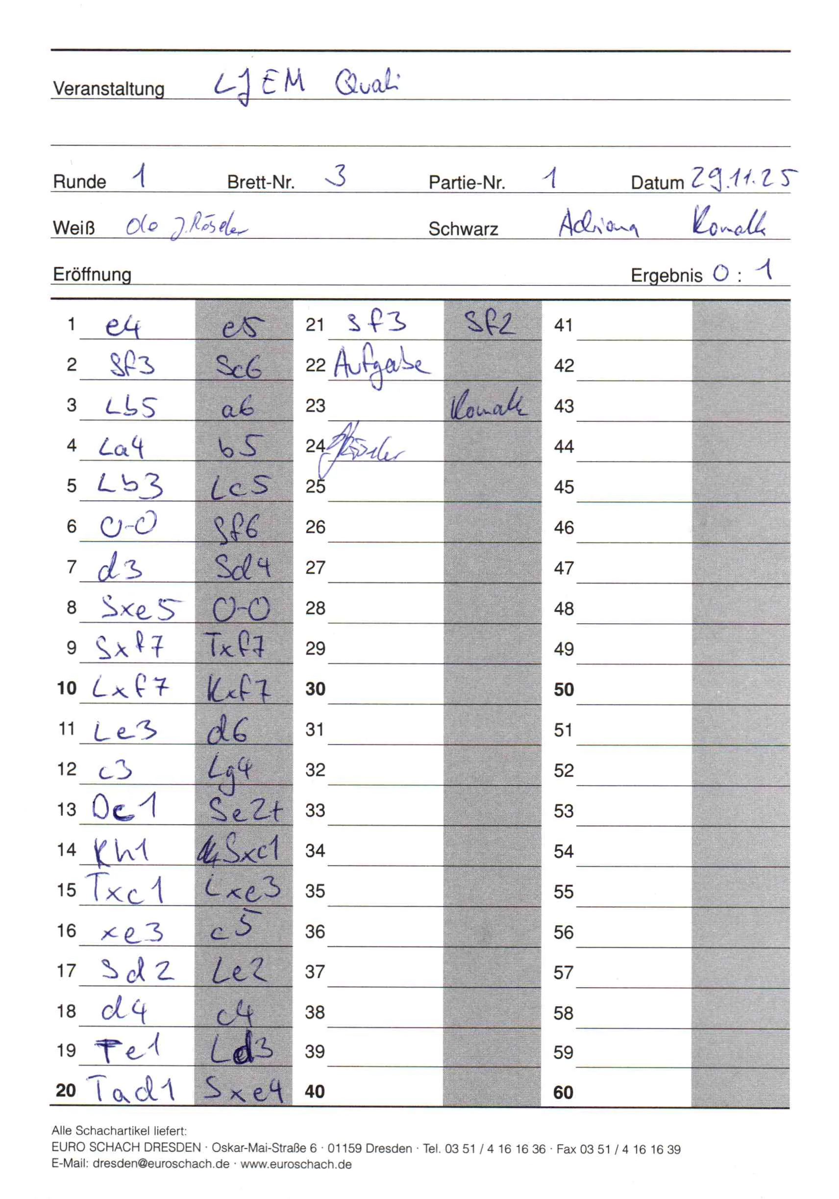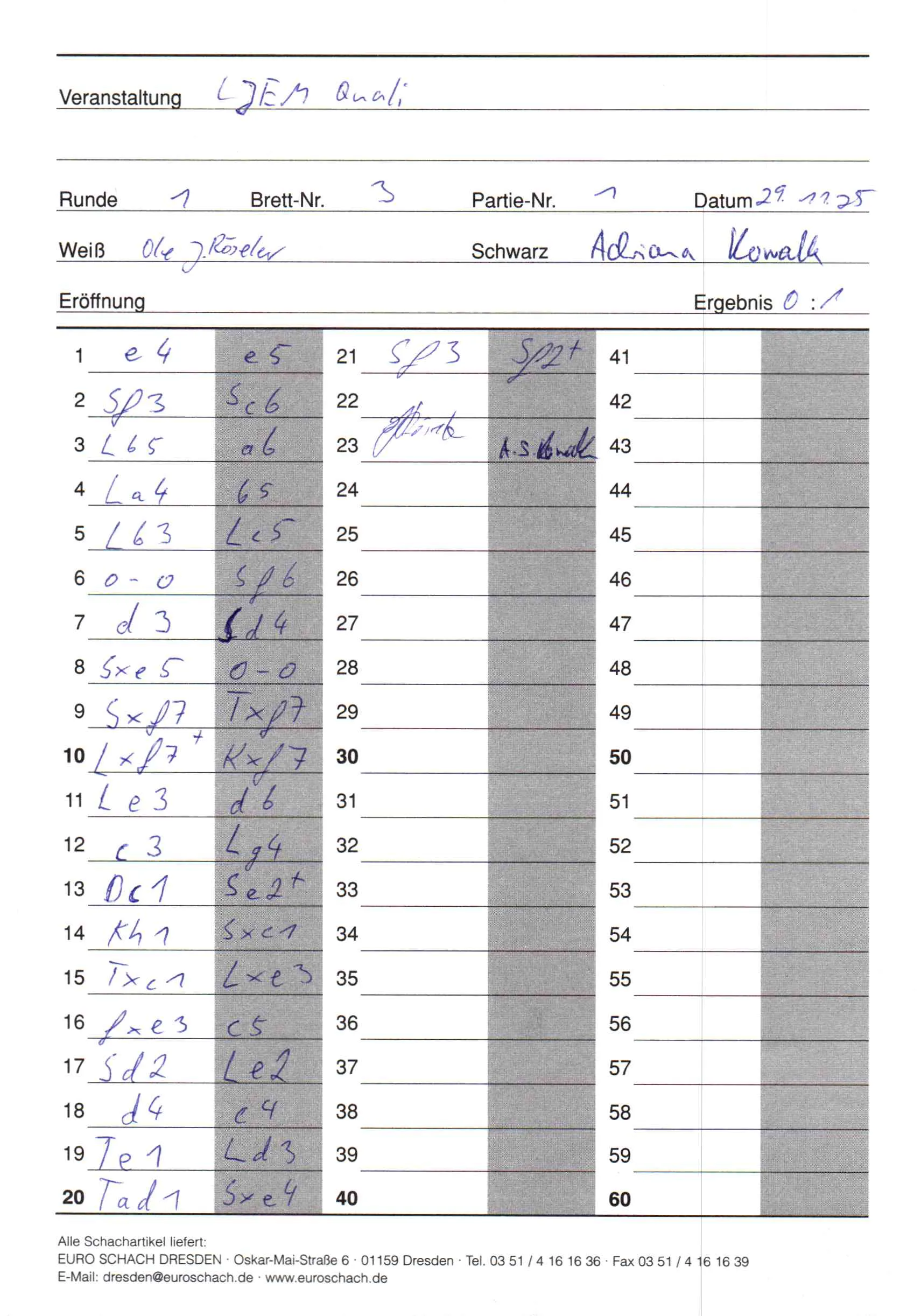 | Weiß: | Röseler, Ole | Schwarz: | Kowalk, Adriana Sophie |