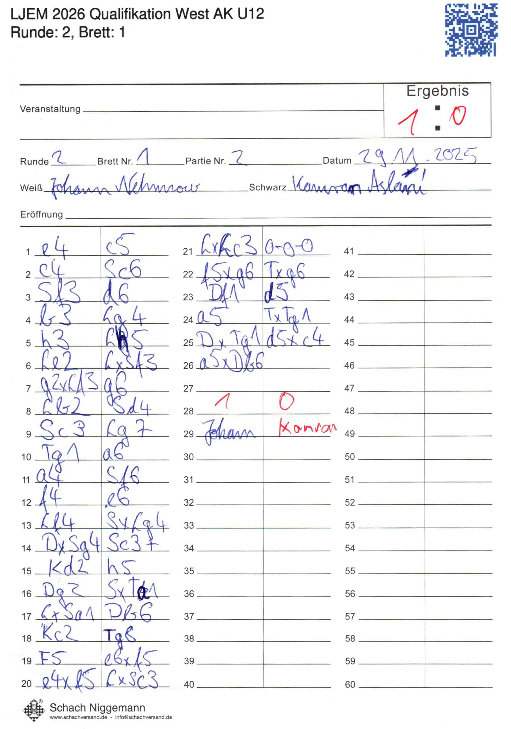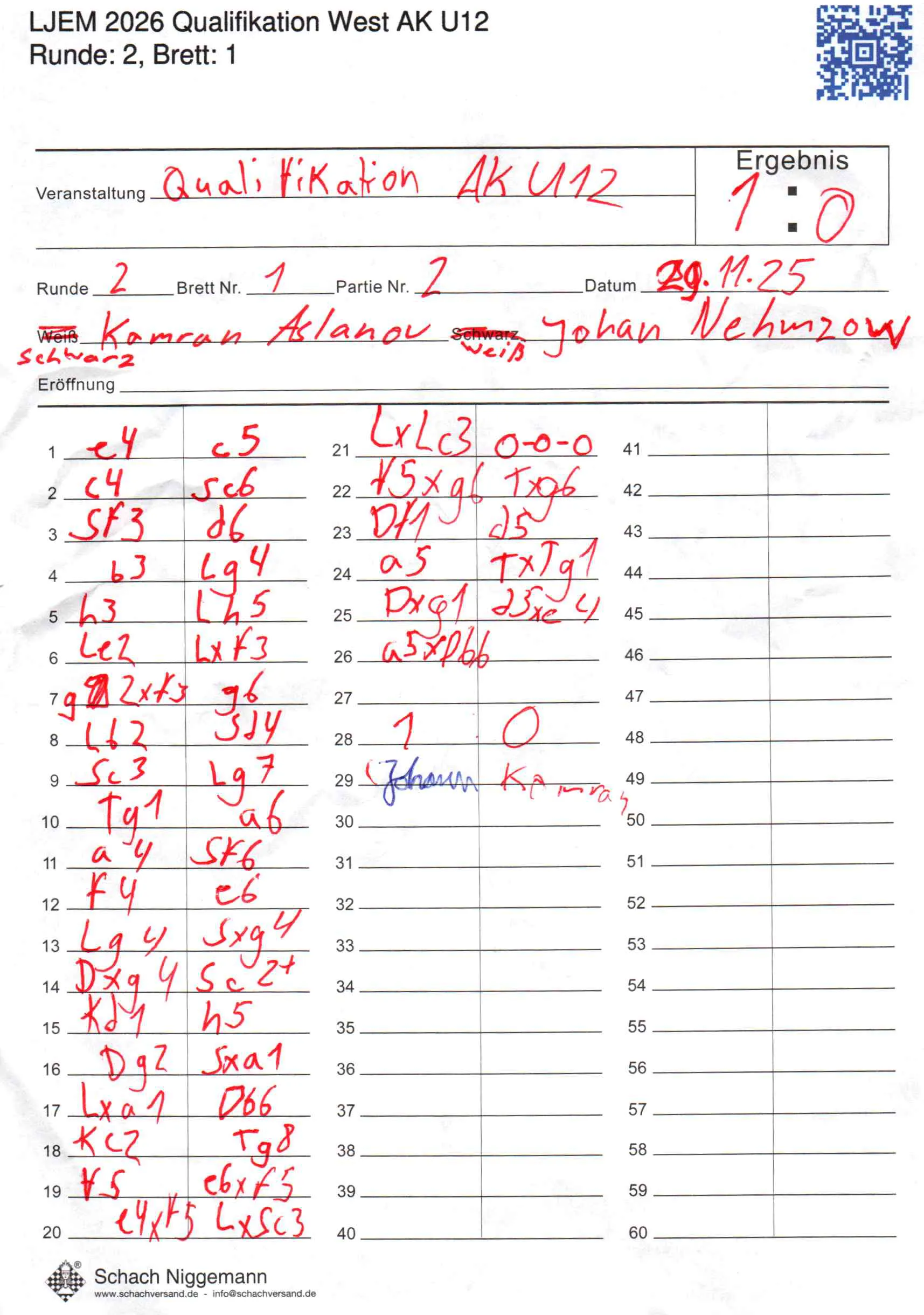 | Weiß: | Nehmzow, Johann | Schwarz: | Aslanov, Kamran |