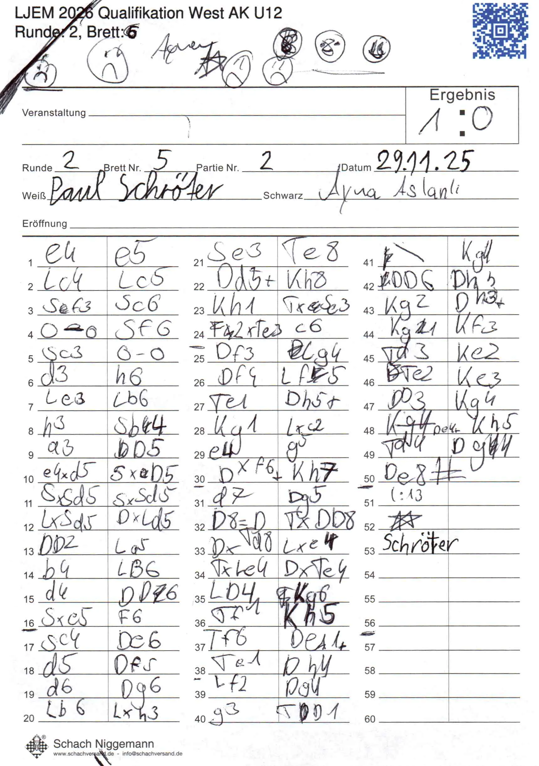 | Weiß: | Schröter, Paul | Schwarz: | Aslanli, Ayna |