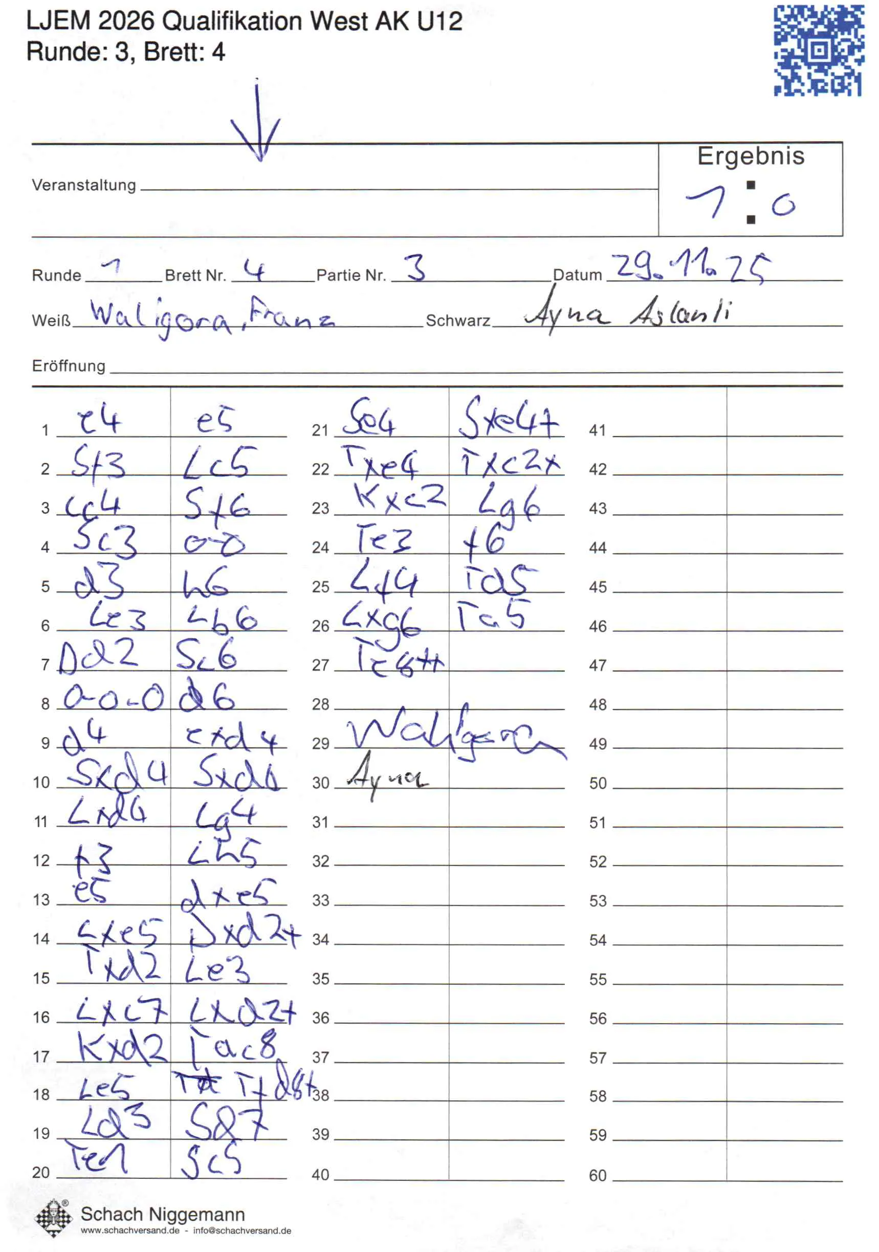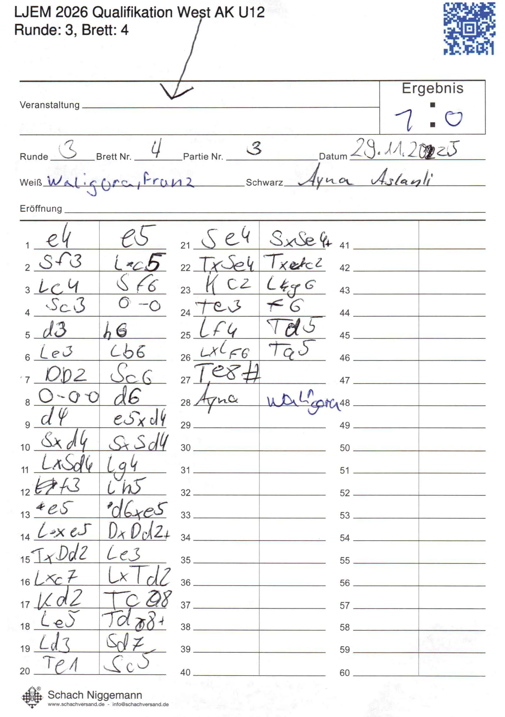 | Weiß: | Waligora, Franz | Schwarz: | Aslanli, Ayna |