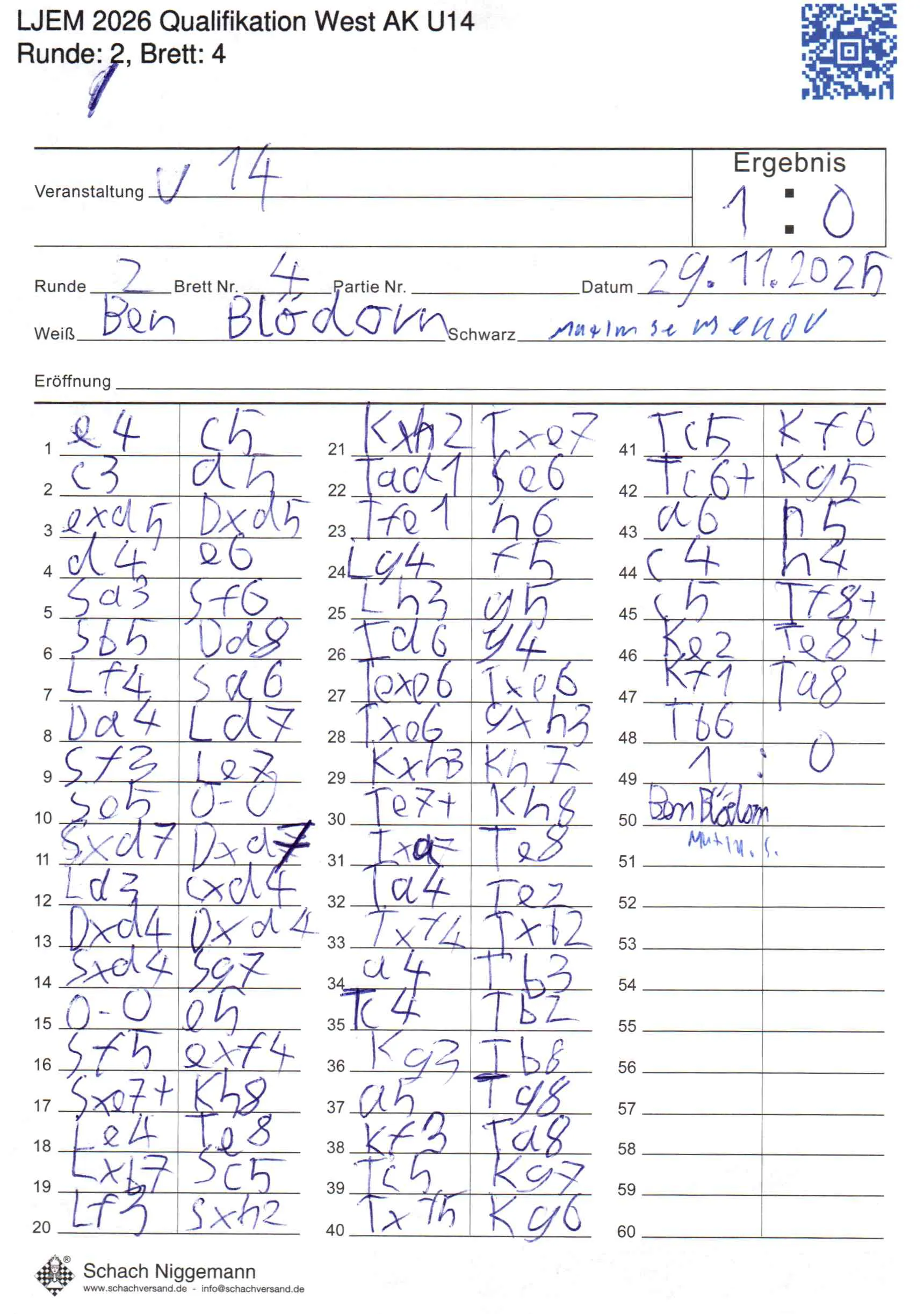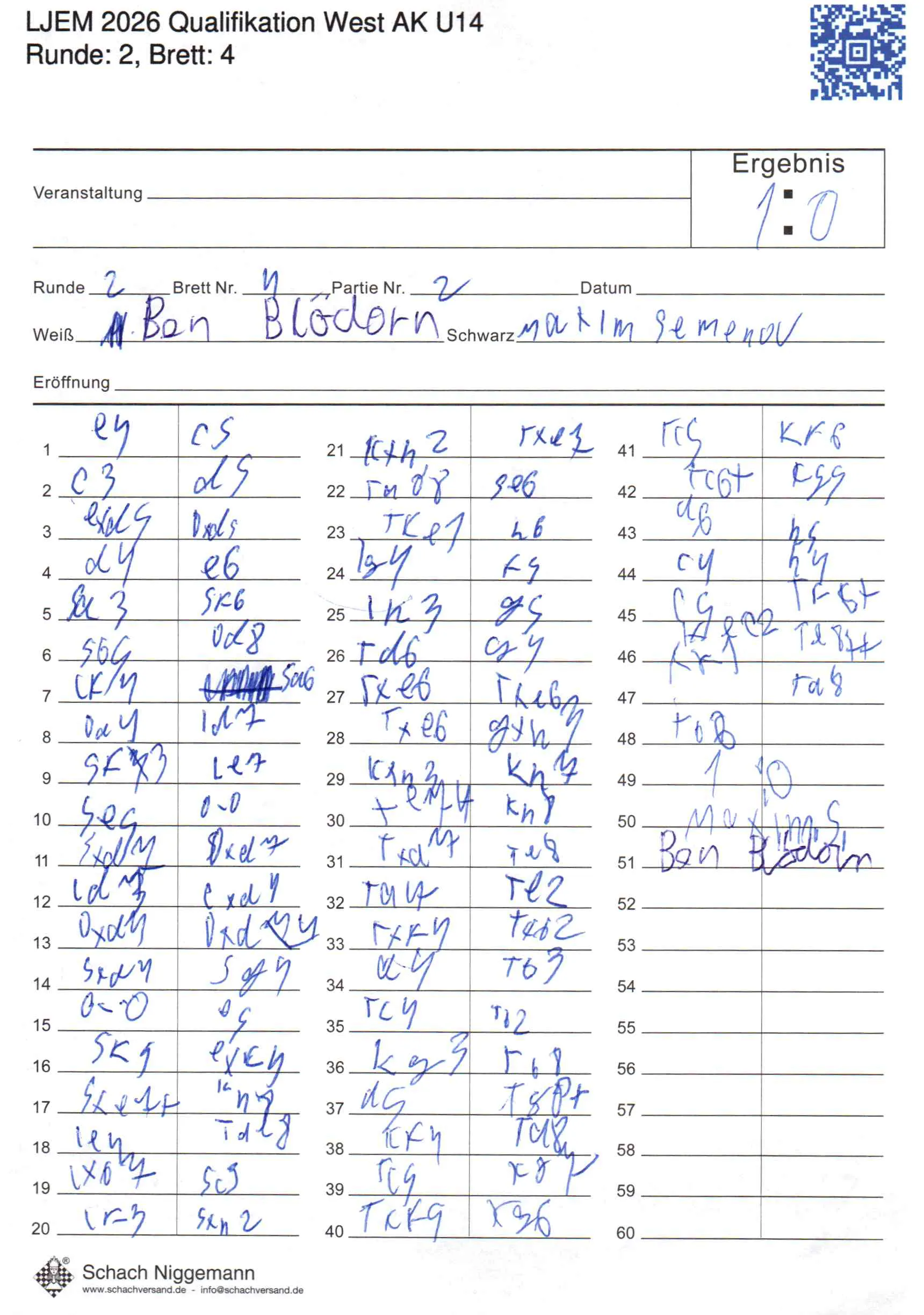 | Weiß: | Blödorn, Ben | Schwarz: | Semenov, Maxim |