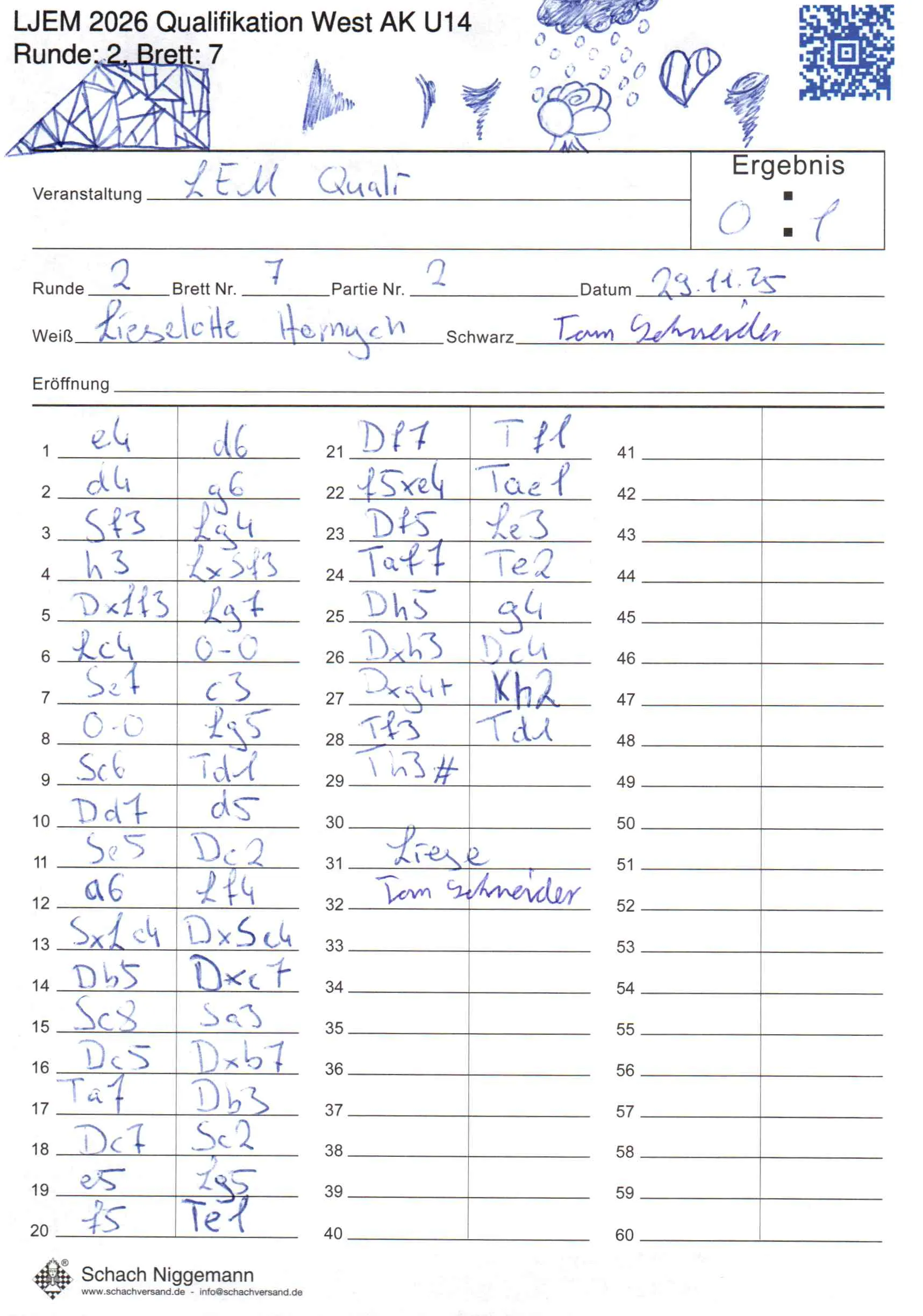 | Weiß: | Hornych, Lieselotte | Schwarz: | Schneider, Tom |