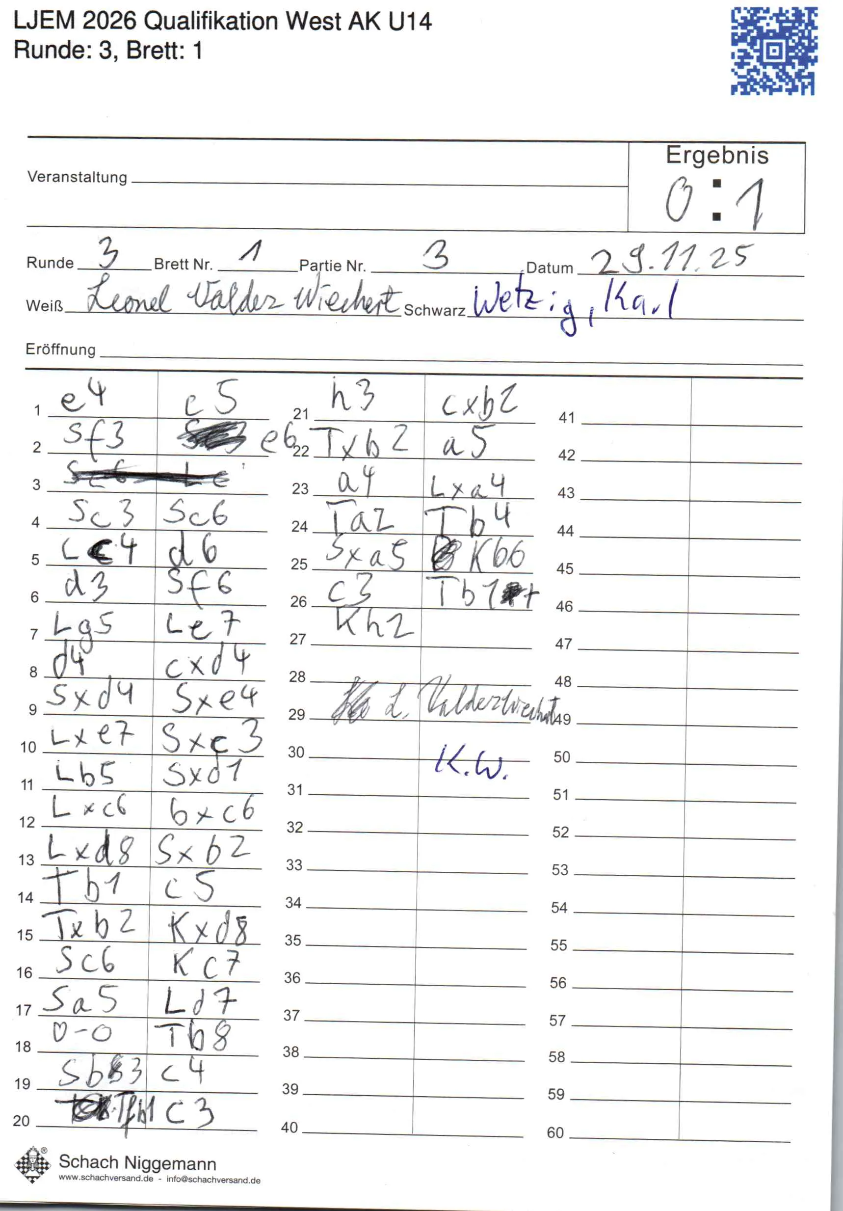 | Weiß: | Wiechert, Leonel | Schwarz: | Wetzig, Karl Anton |