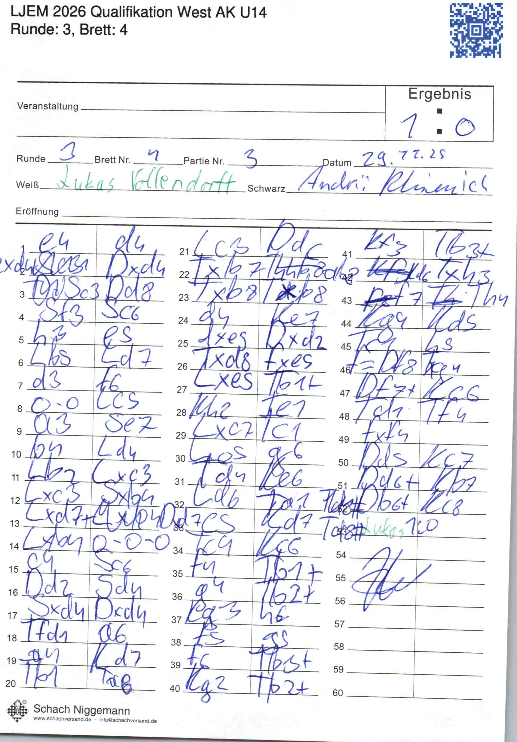 | Weiß: | Vollendorff, Lukas | Schwarz: | Khimich, Andrii |