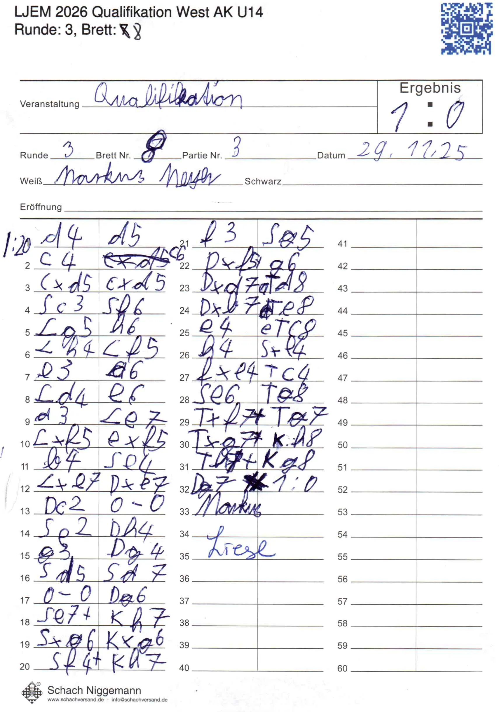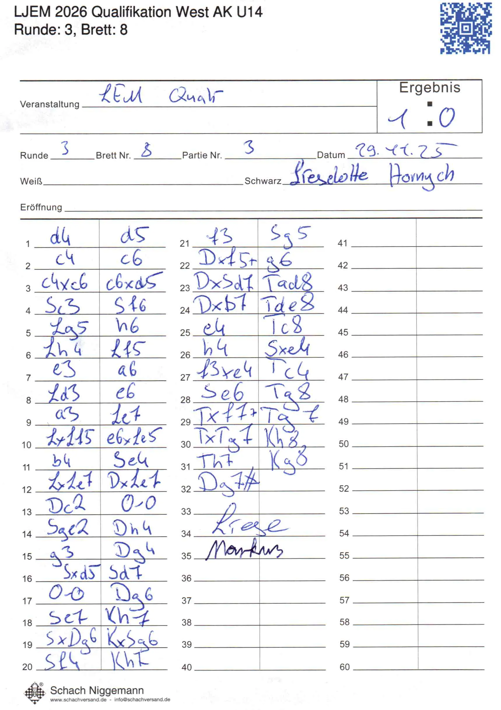 | Weiß: | Meyer, Markus | Schwarz: | Hornych, Lieselotte |