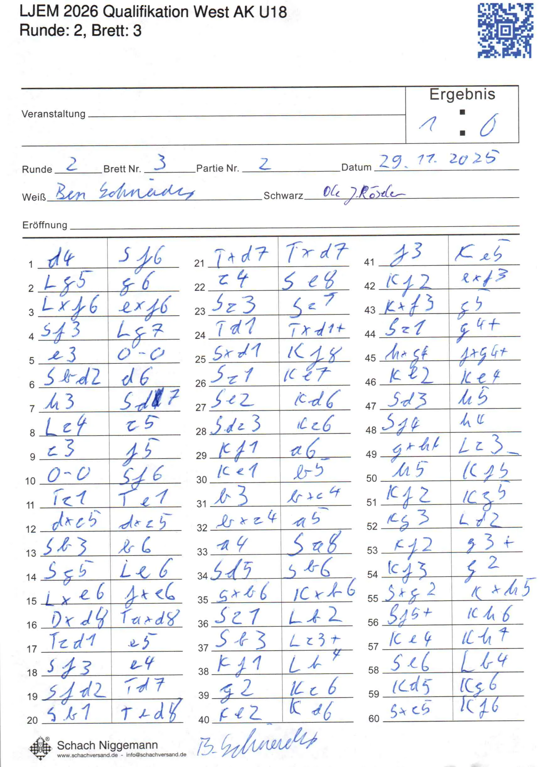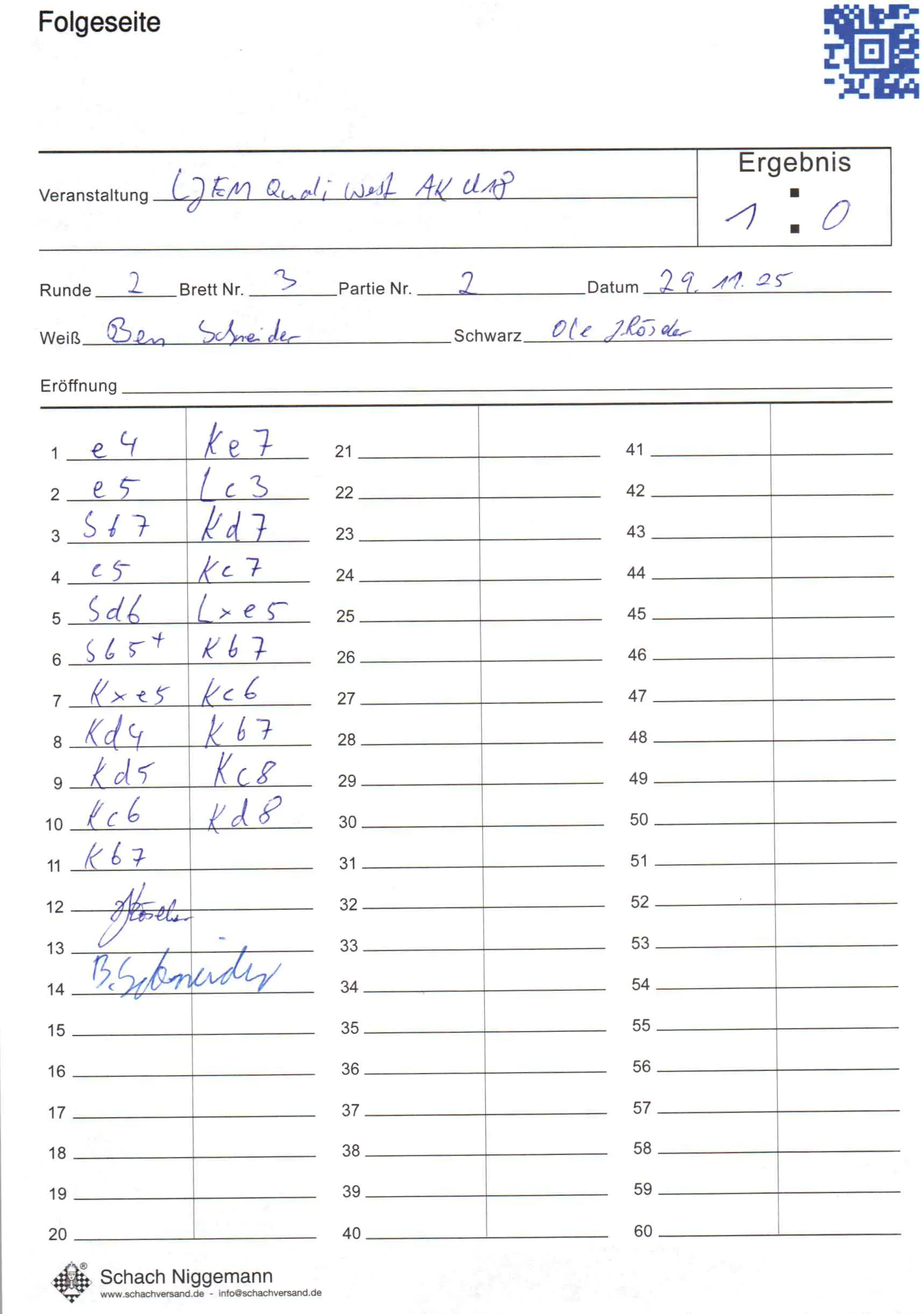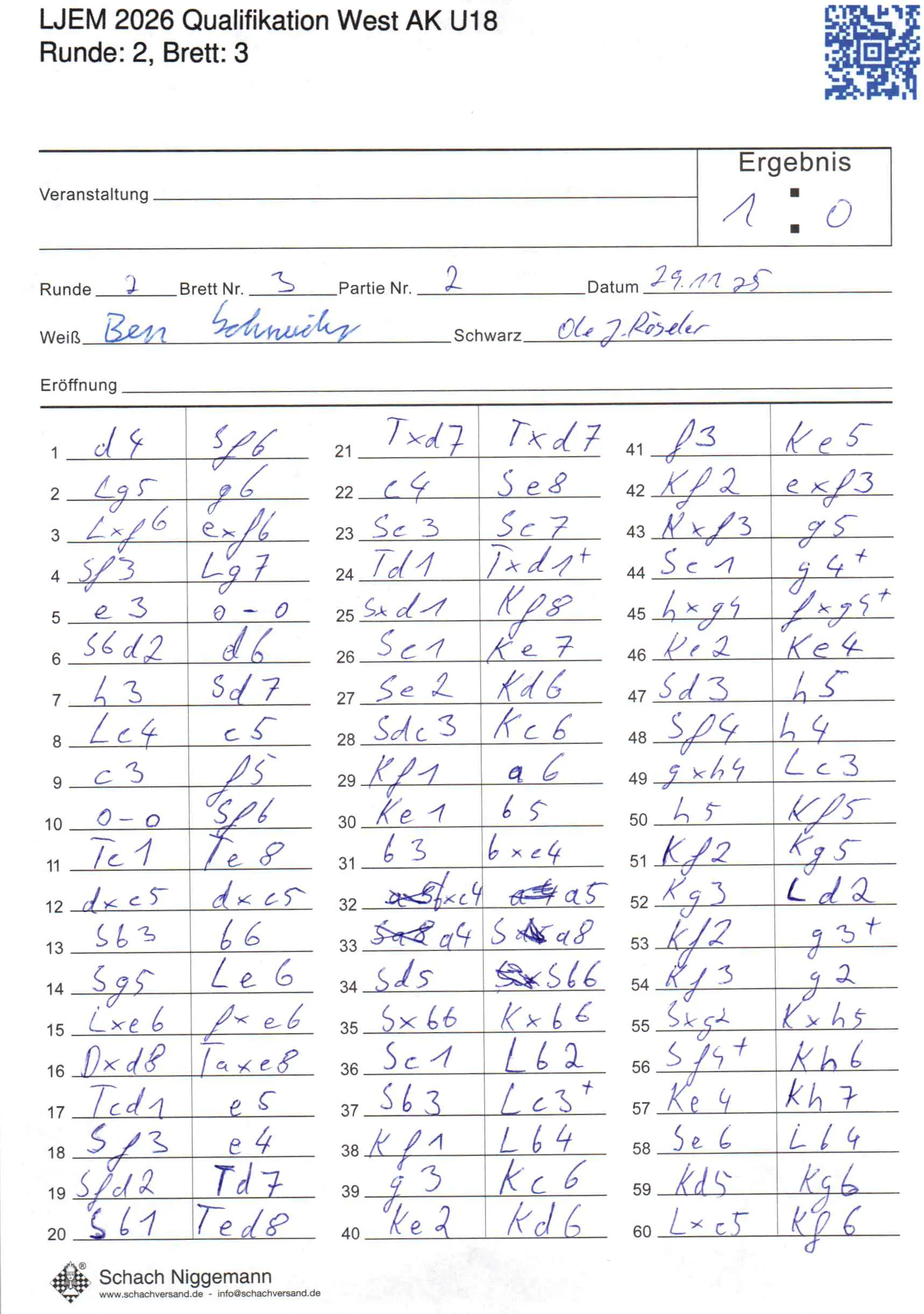 | Weiß: | Schneider, Ben | Schwarz: | Röseler, Ole |