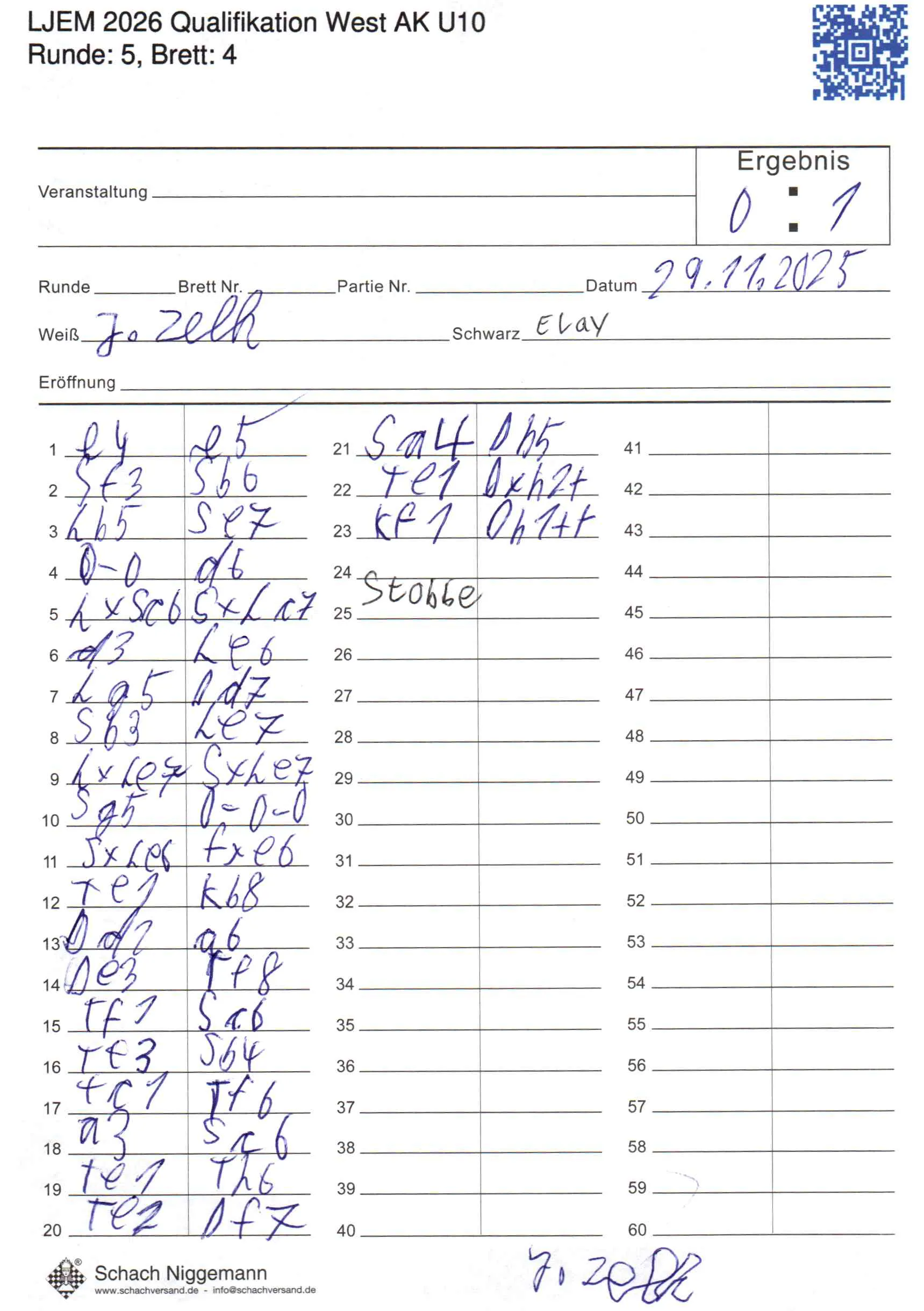 | Weiß: | Zelk, Jannik Elias | Schwarz: | Stobbe, Elay |