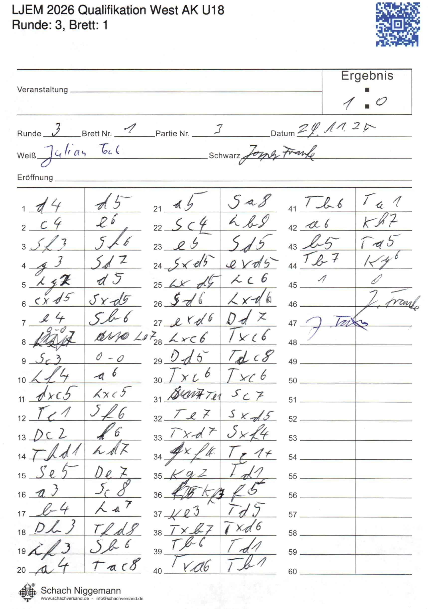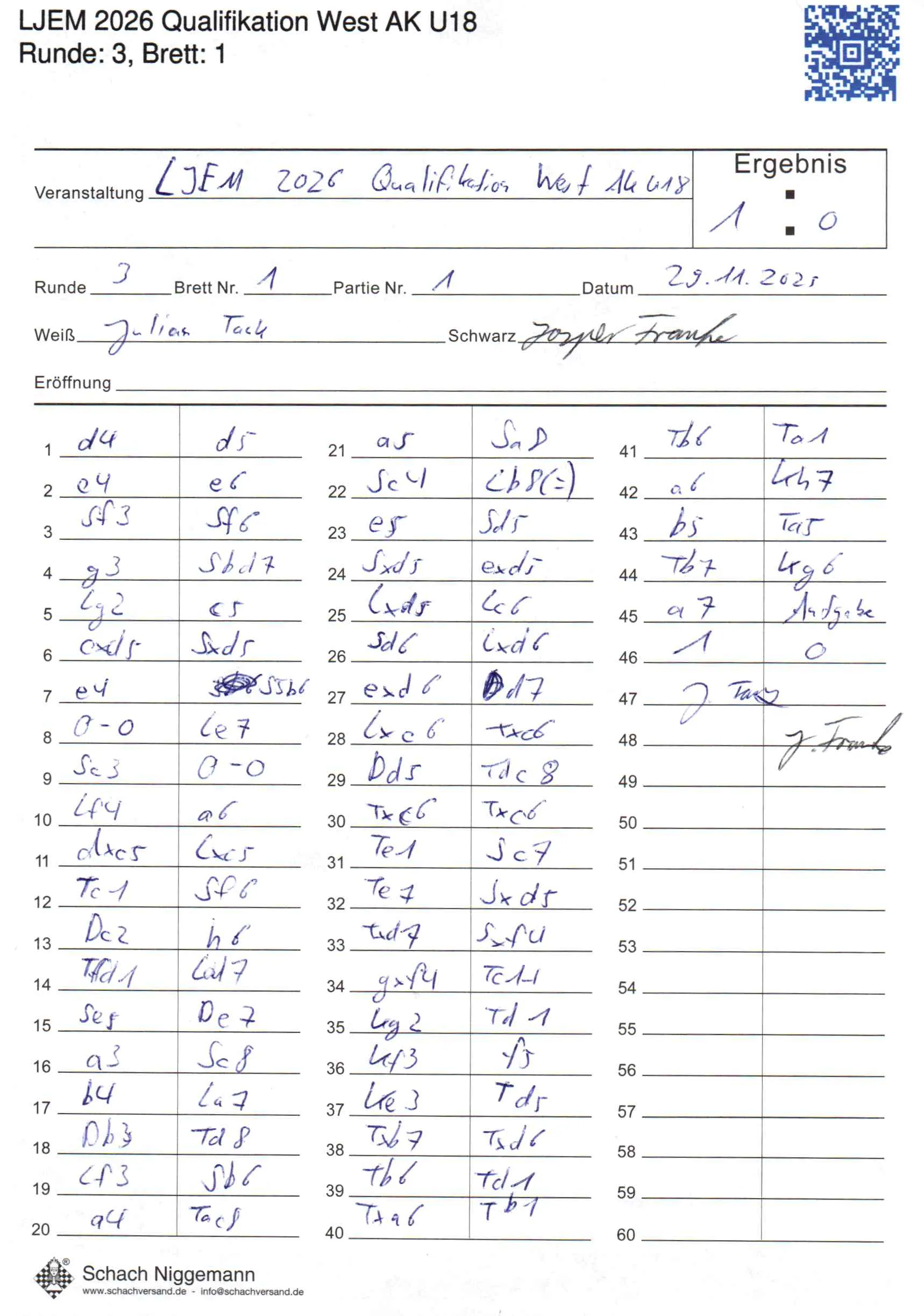 | Weiß: | Tank, Julian | Schwarz: | Franke, Jasper |