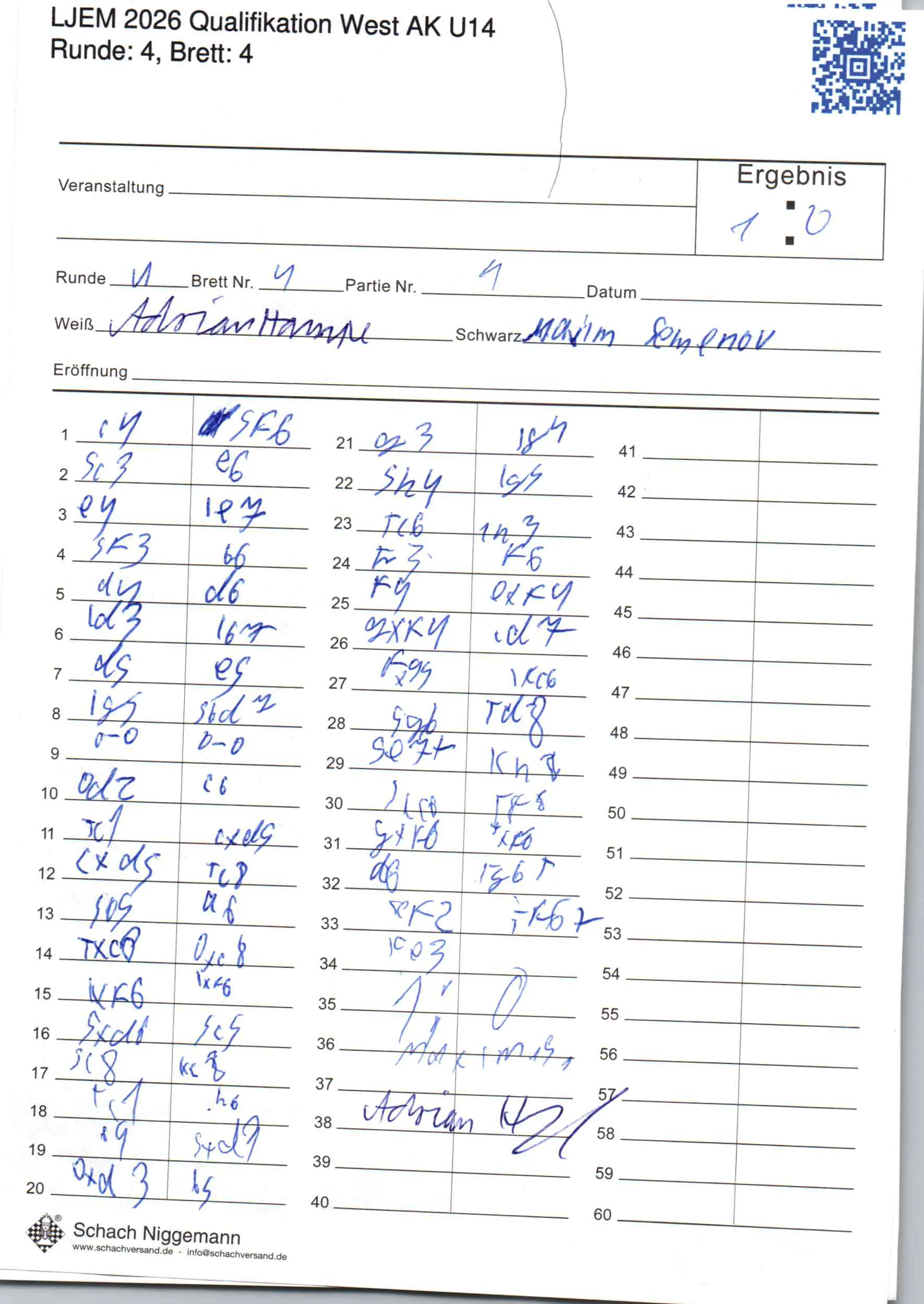 | Weiß: | Hampe, Adrian | Schwarz: | Semenov, Maxim |