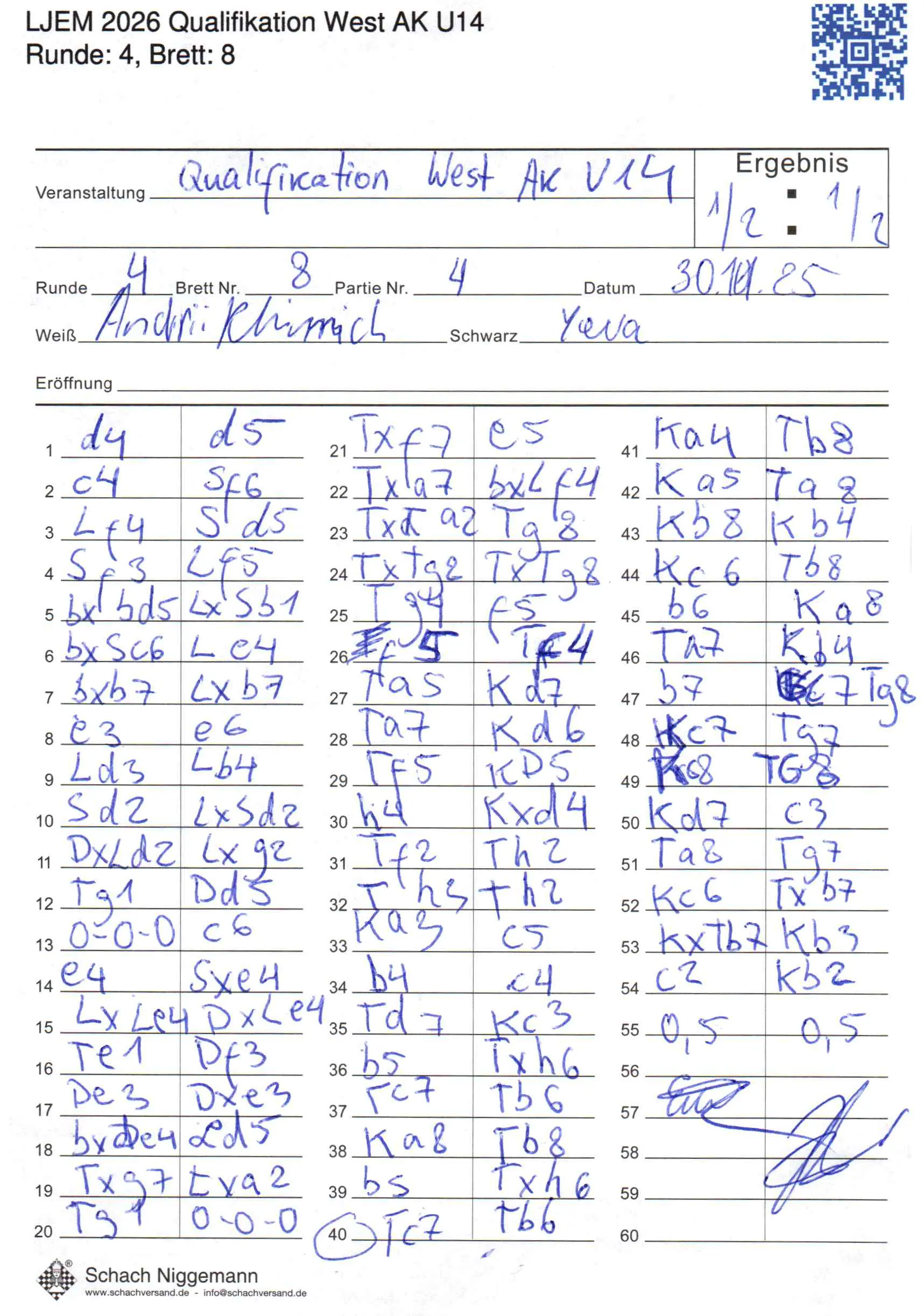 | Weiß: | Khimich, Andrii | Schwarz: | Aminova, Yeva |