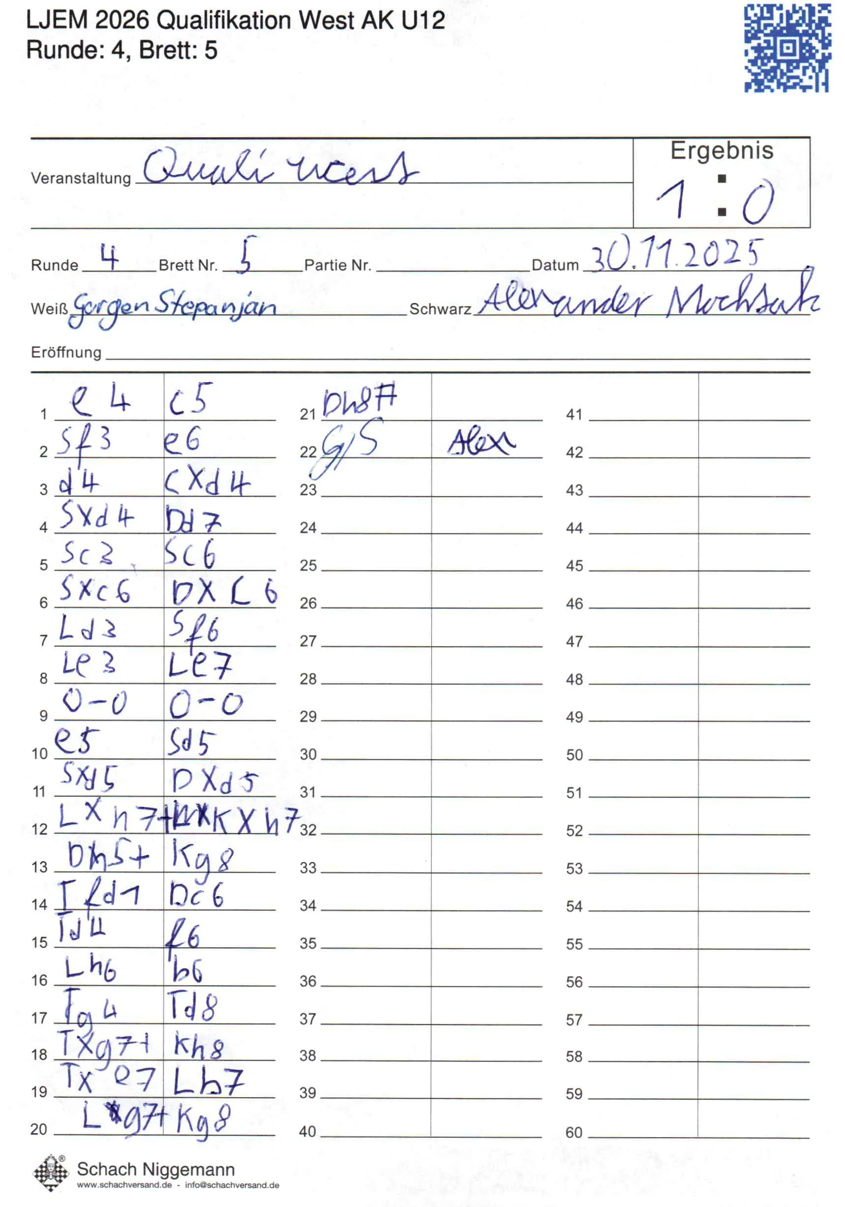 | Weiß: | Stepanjan, Gurgen | Schwarz: | Mochtak, Alexander |