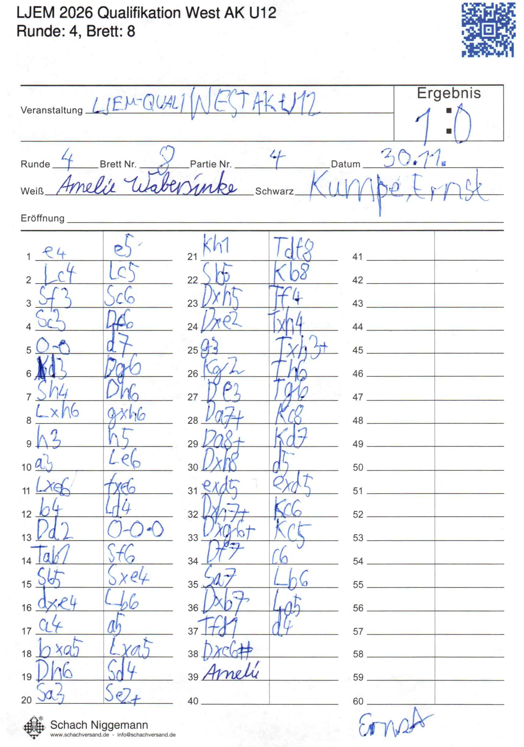 | Weiß: | Wabersinke, Amelie | Schwarz: | Kumpe, Ernst |