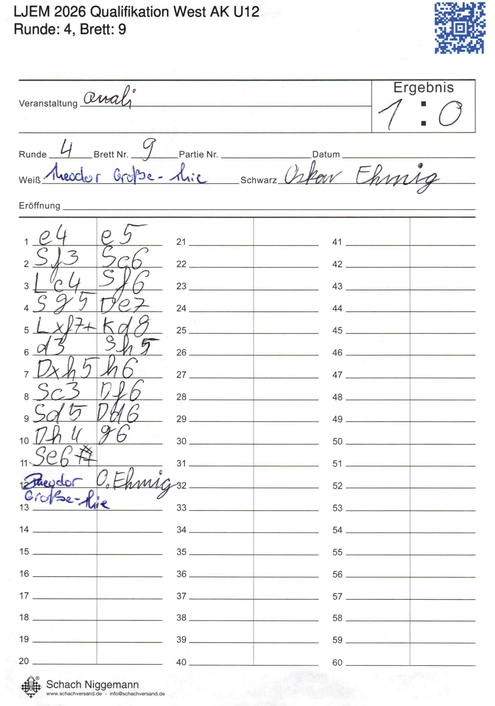 | Weiß: | Große-Thie, Theodor | Schwarz: | Ehmig, Oskar |