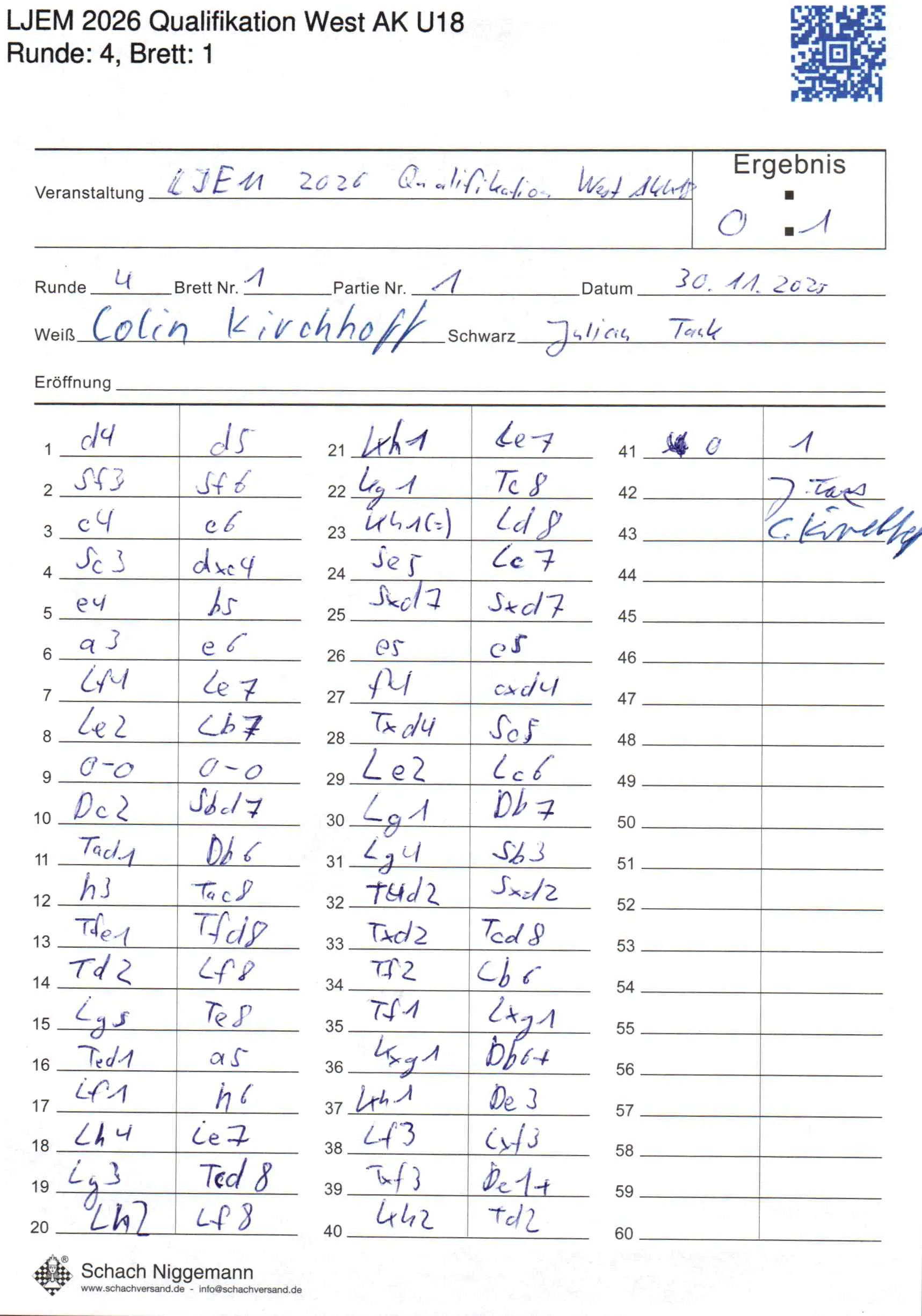 | Weiß: | Kirchhoff, Colin | Schwarz: | Tank, Julian |