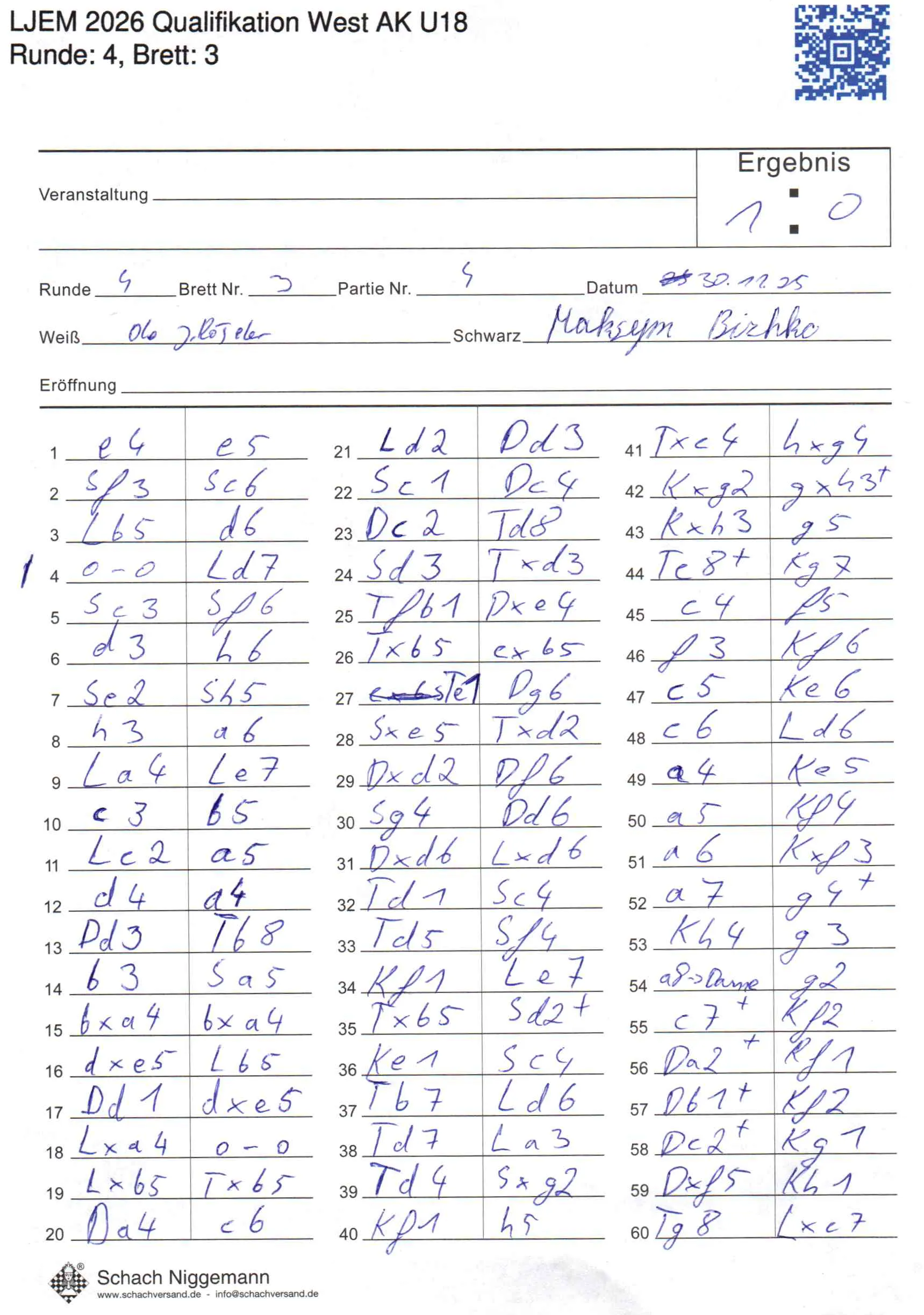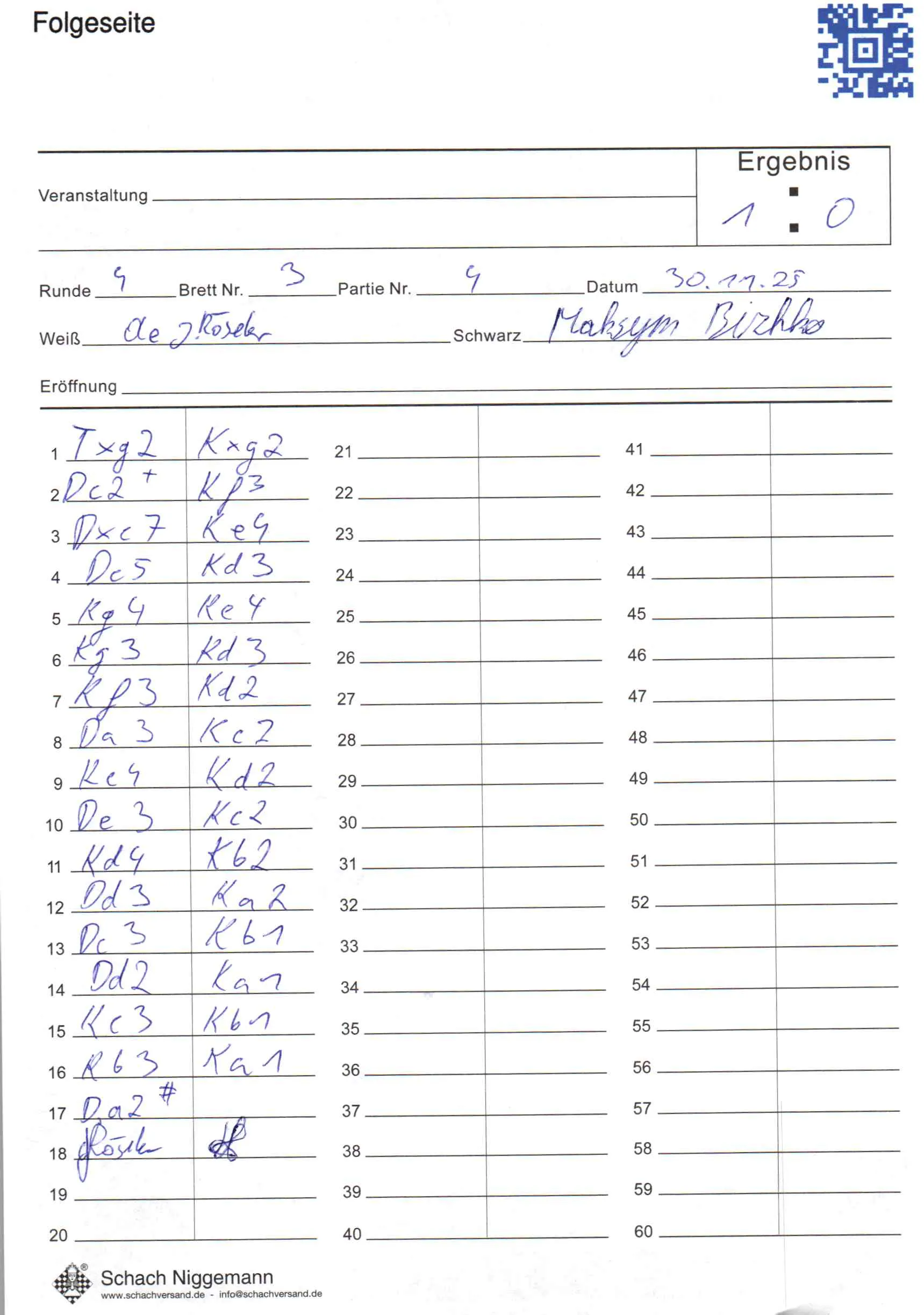 | Weiß: | Röseler, Ole | Schwarz: | Bizhko, Maksym |