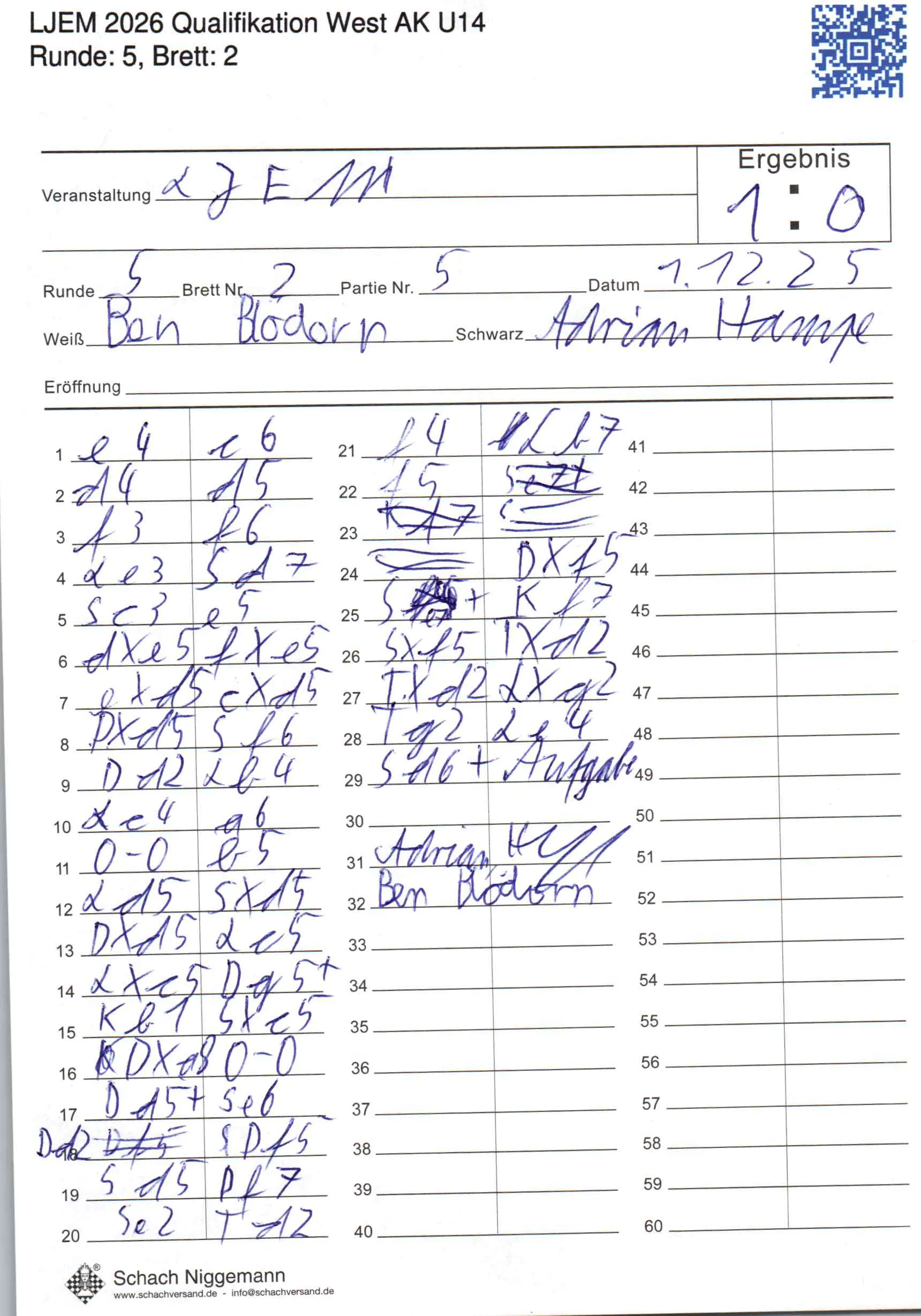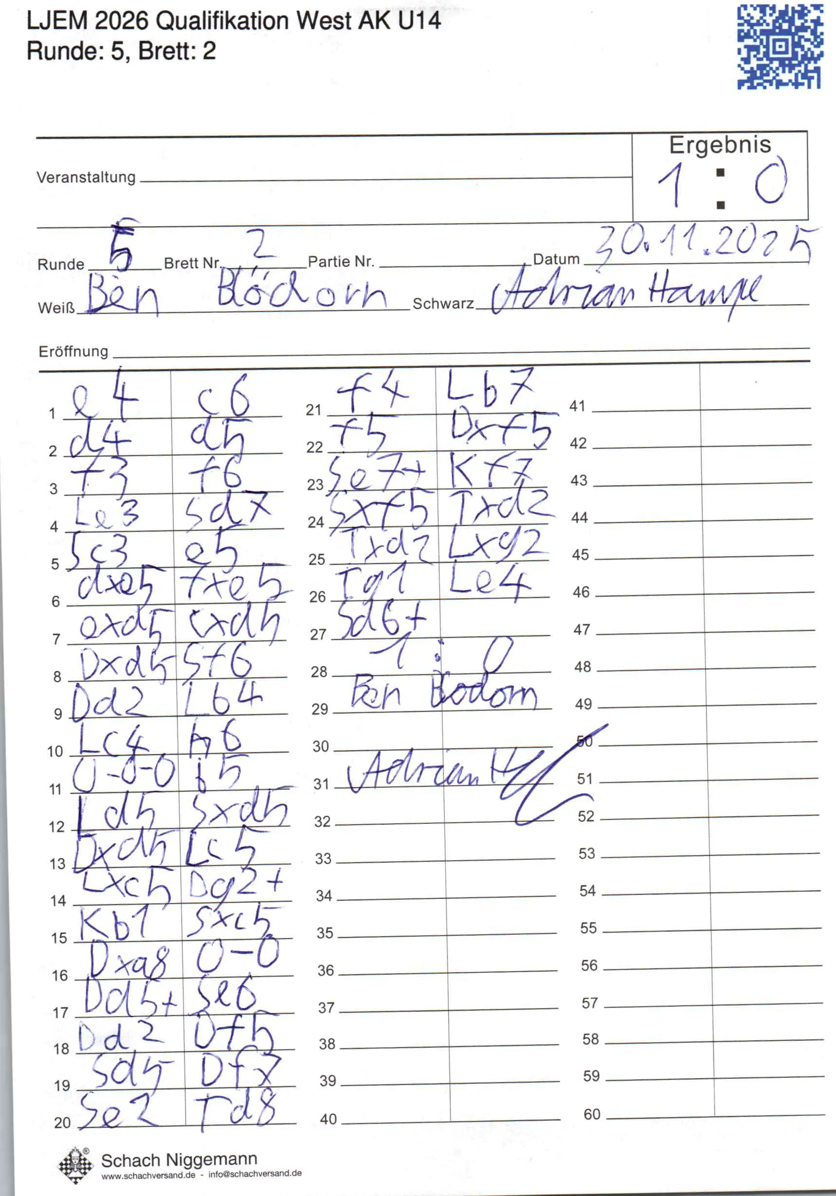 | Weiß: | Blödorn, Ben | Schwarz: | Hampe, Adrian |