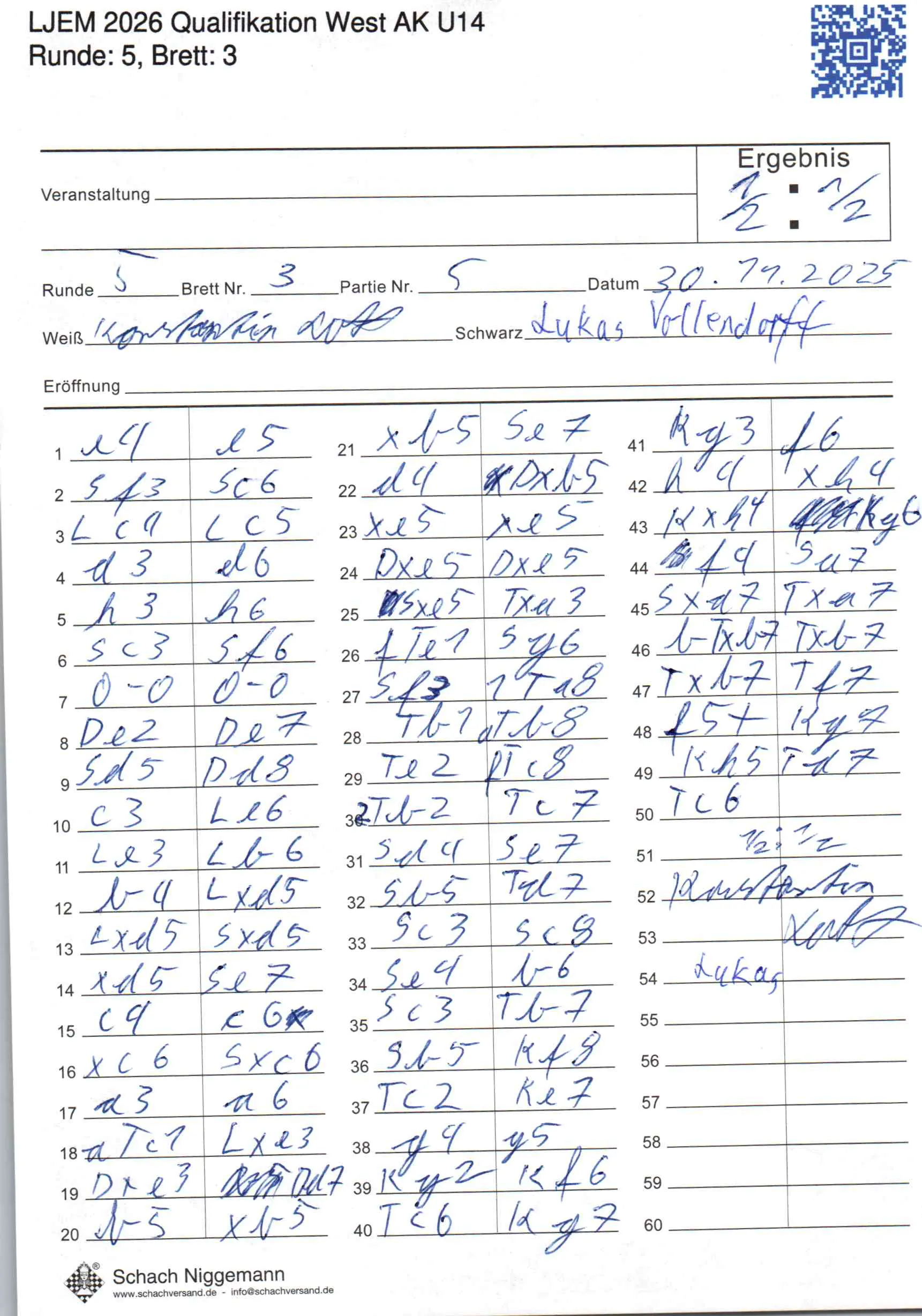 | Weiß: | Lott, Konstantin | Schwarz: | Vollendorff, Lukas |