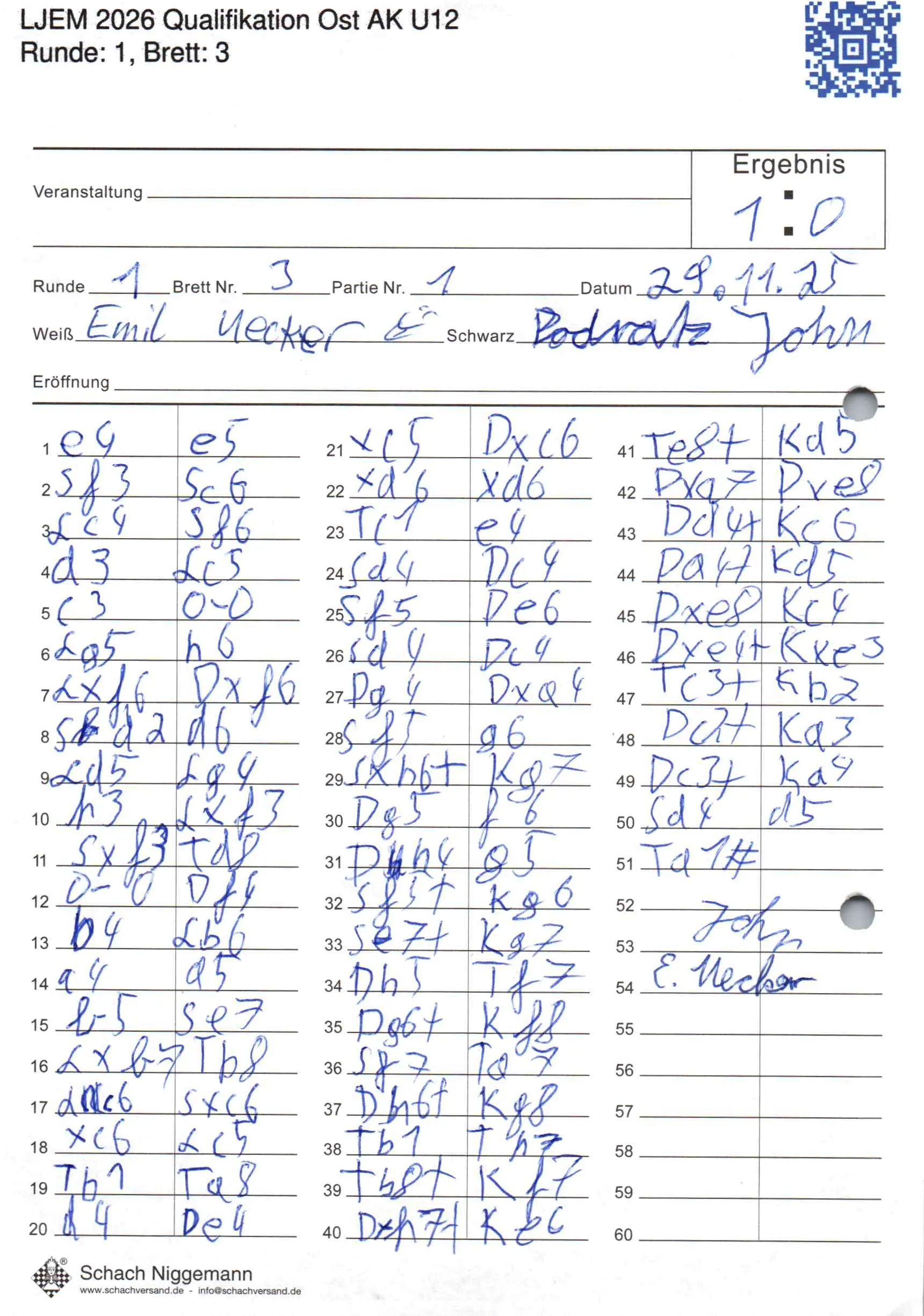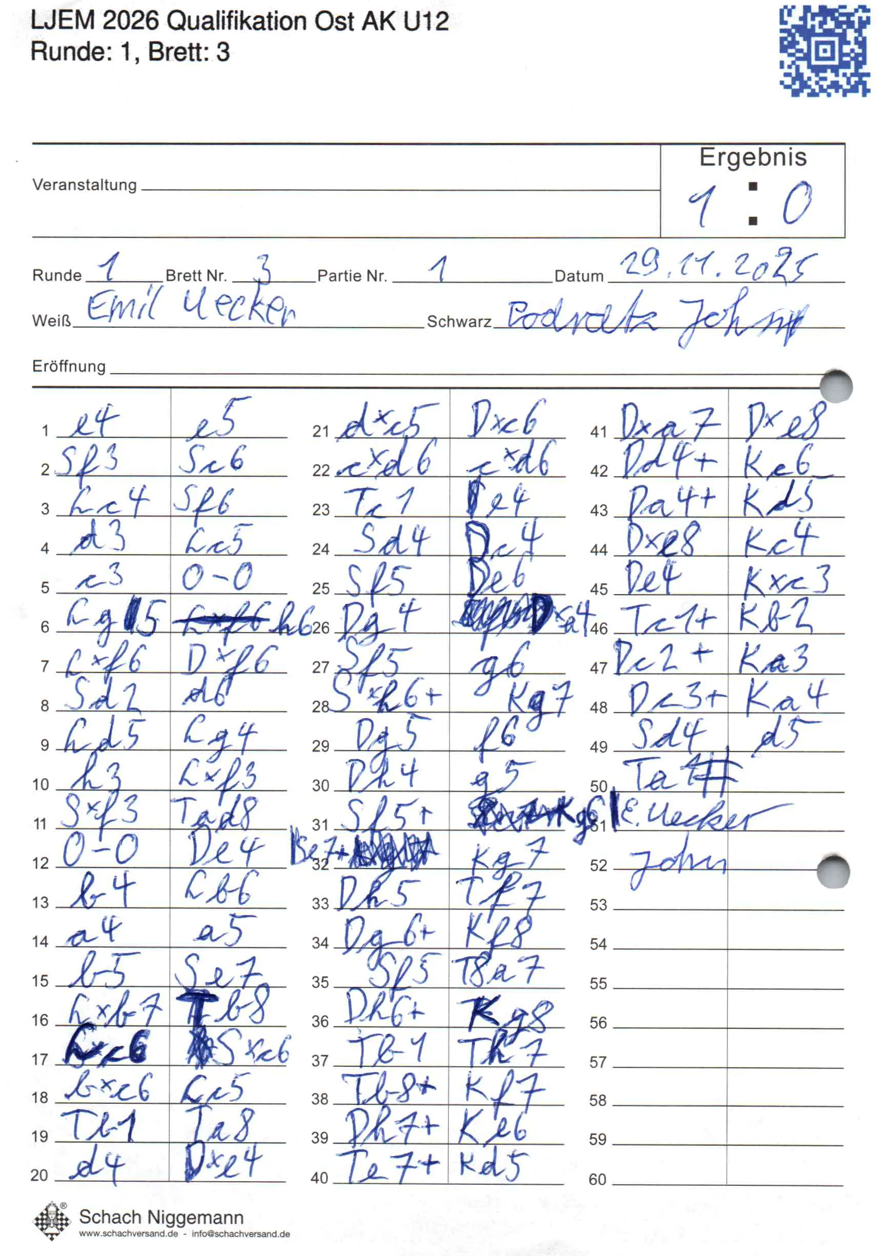 | Weiß: | Uecker, Emil | Schwarz: | Podratz, John |