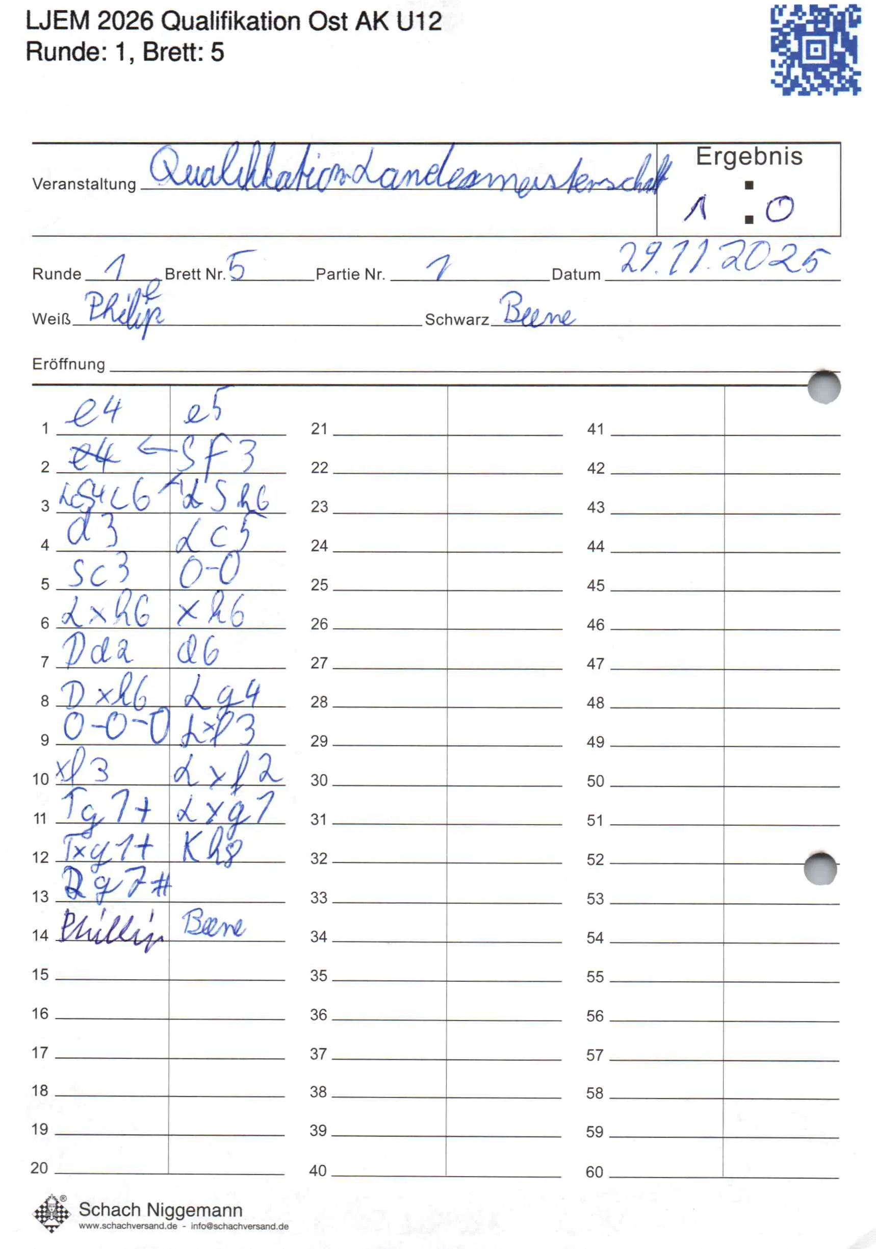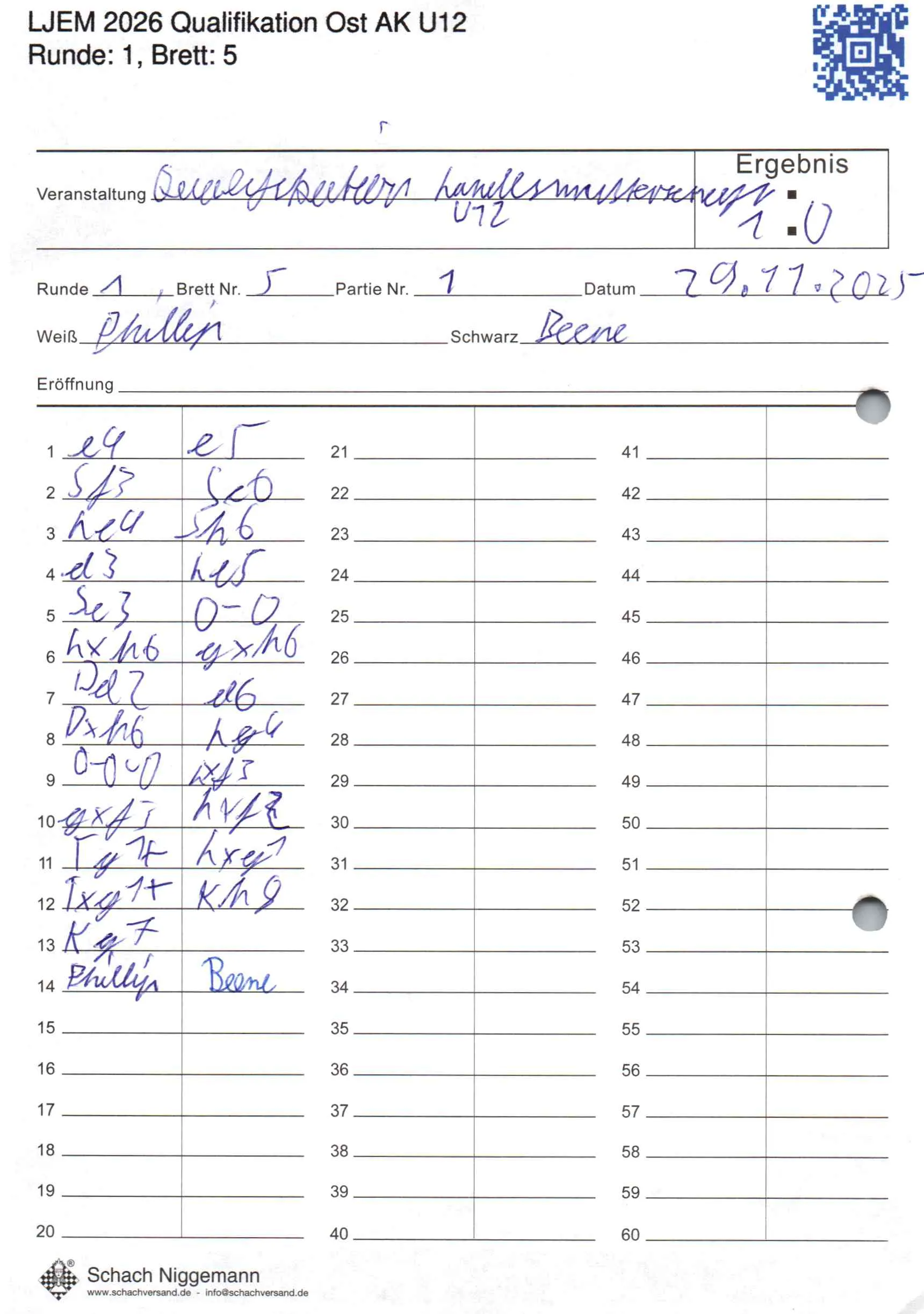 | Weiß: | Lubawy, Phillip | Schwarz: | Lüpken, Beene |
