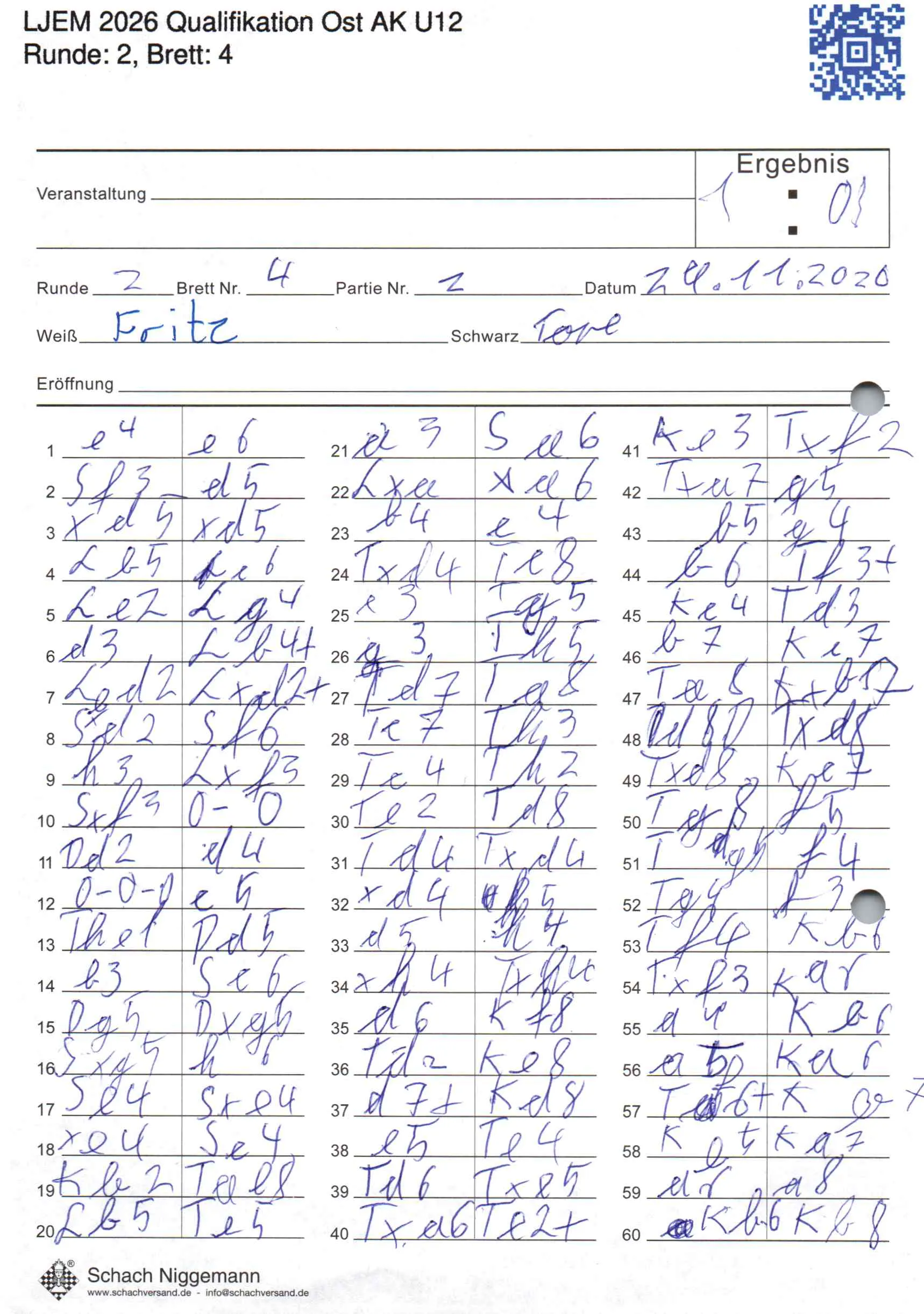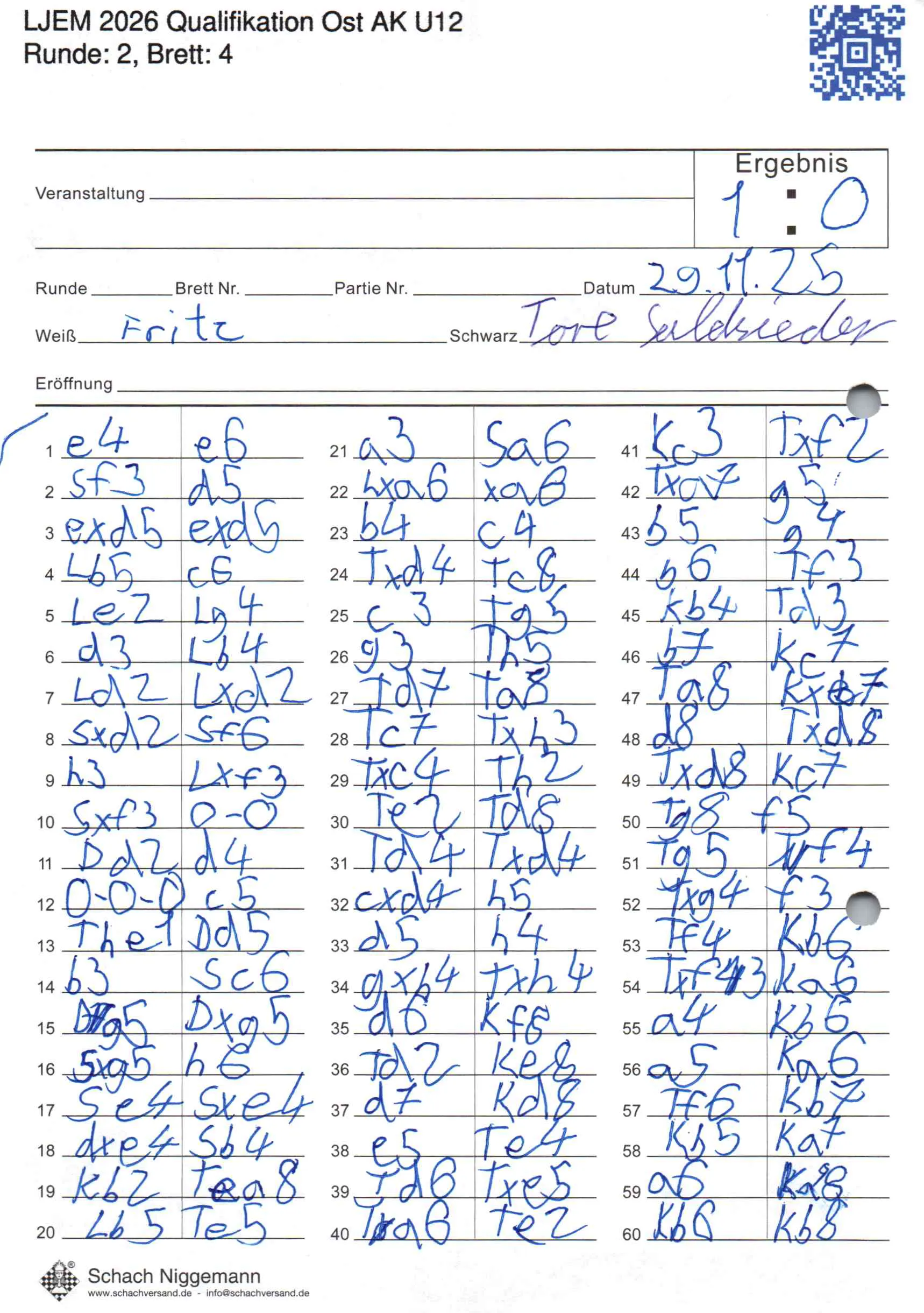 | Weiß: | Fritz, Friedrich | Schwarz: | Saldsieder, Tore |