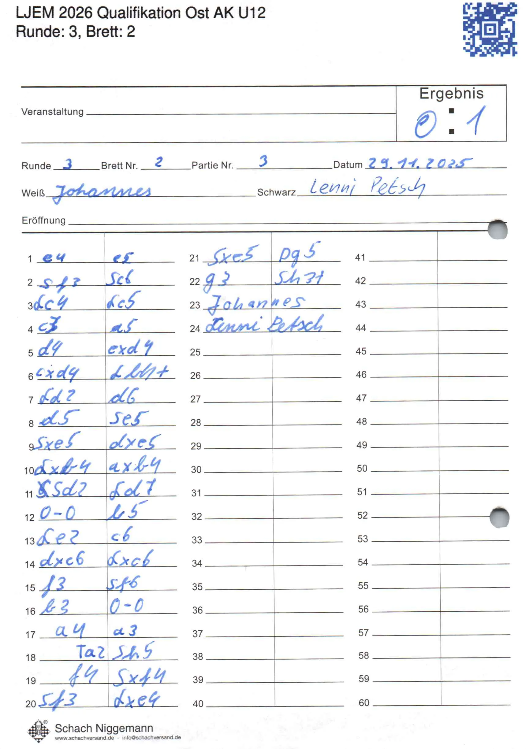 | Weiß: | Paulet, Johannes | Schwarz: | Petsch, Lenni |
