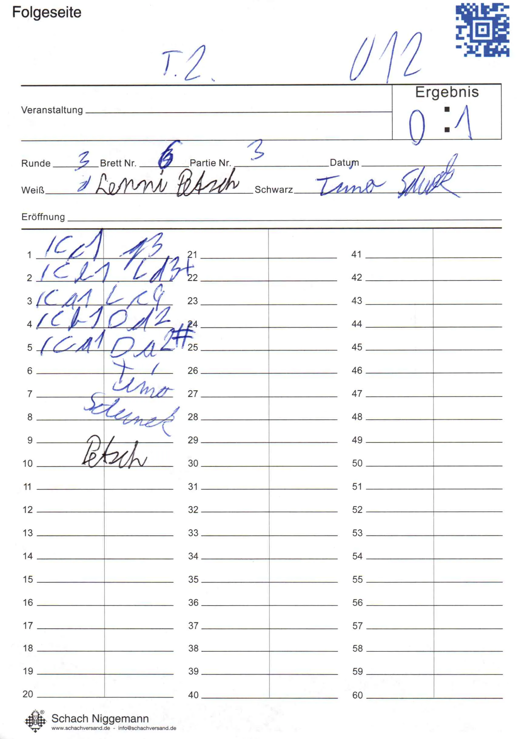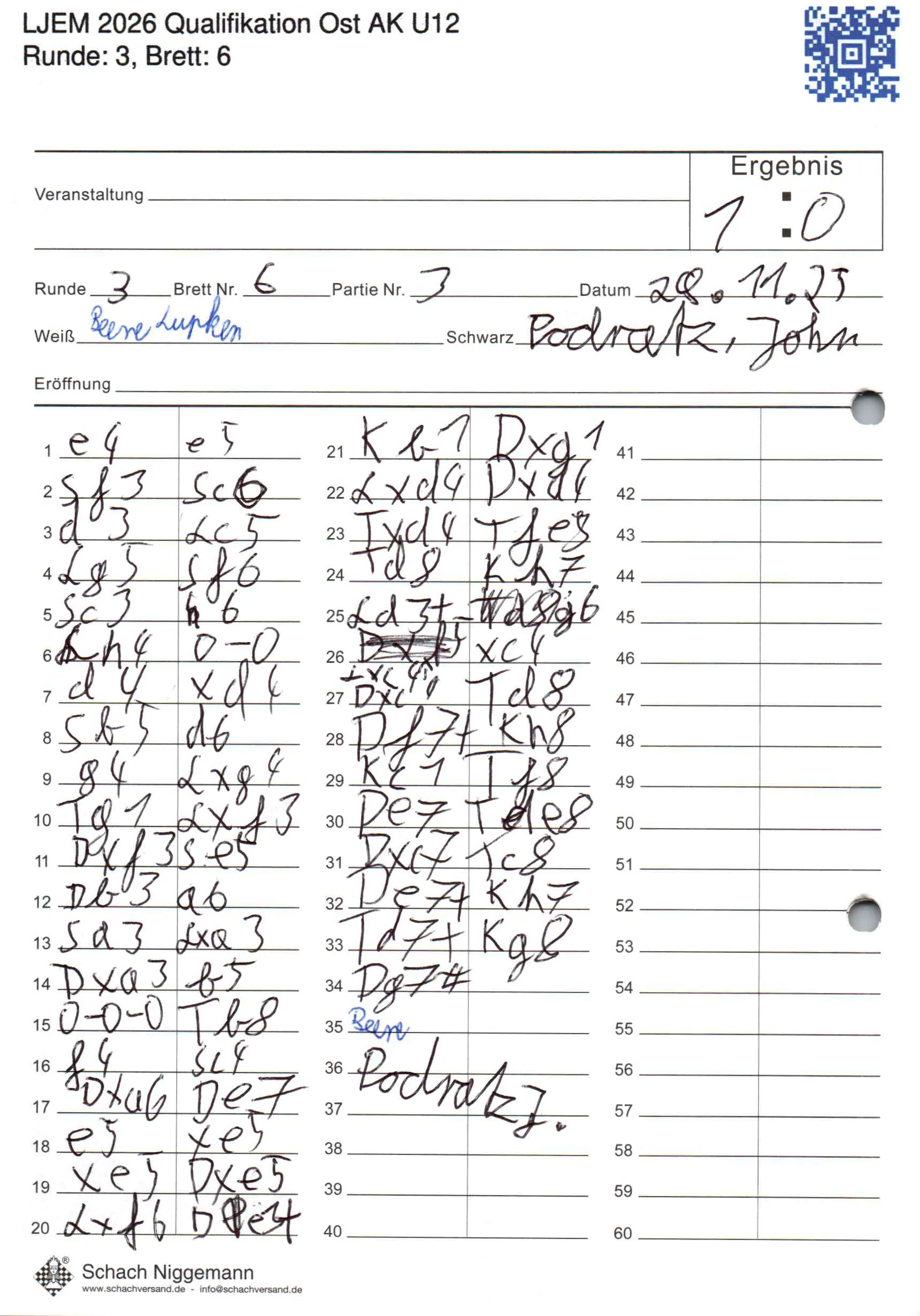 | Weiß: | Lüpken, Beene | Schwarz: | Podratz, John |