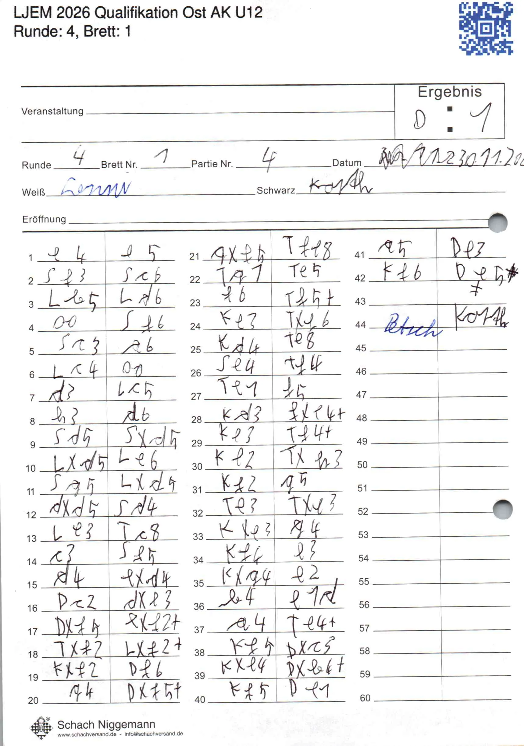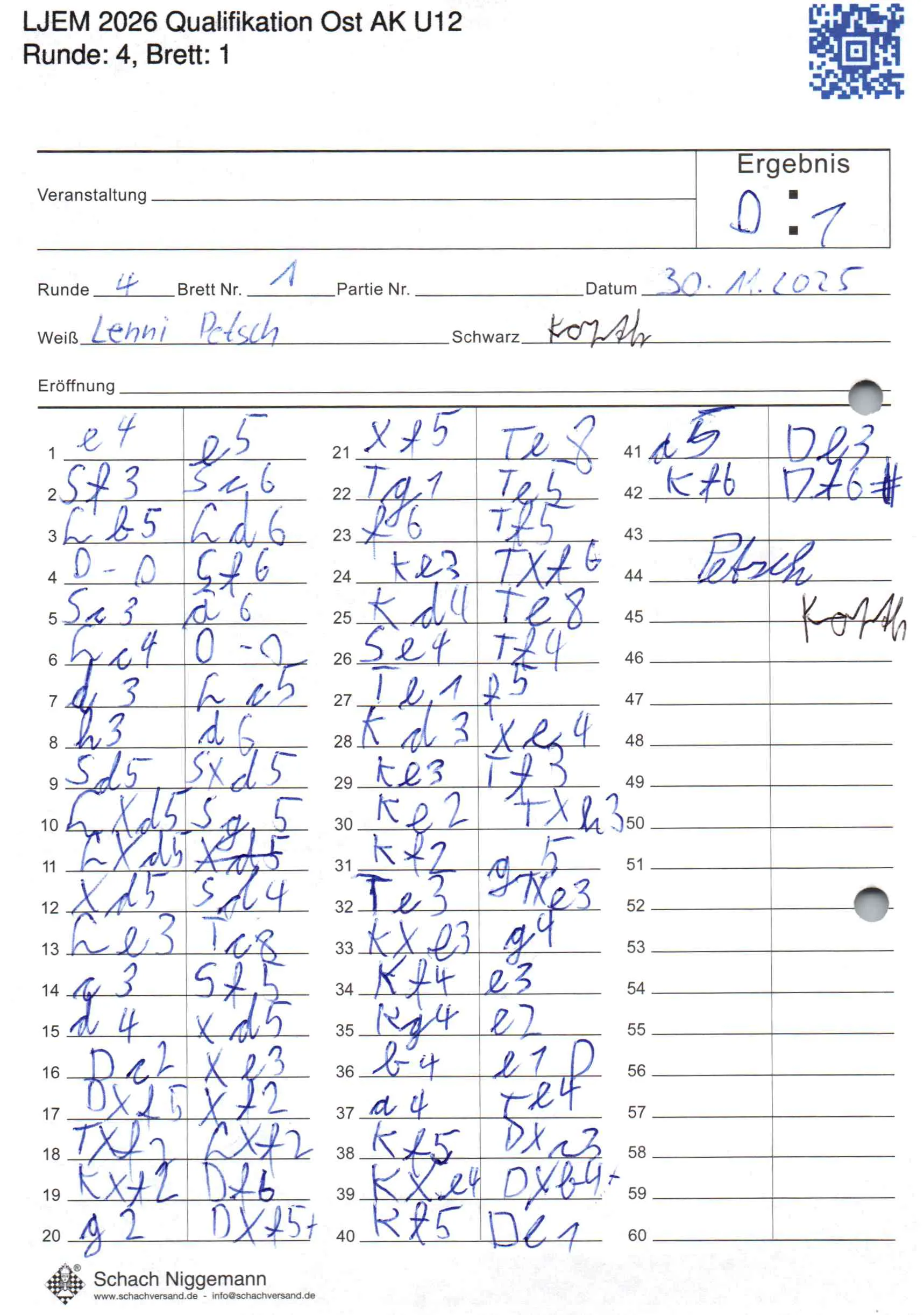 | Weiß: | Petsch, Lenni | Schwarz: | Korth, Alexander |