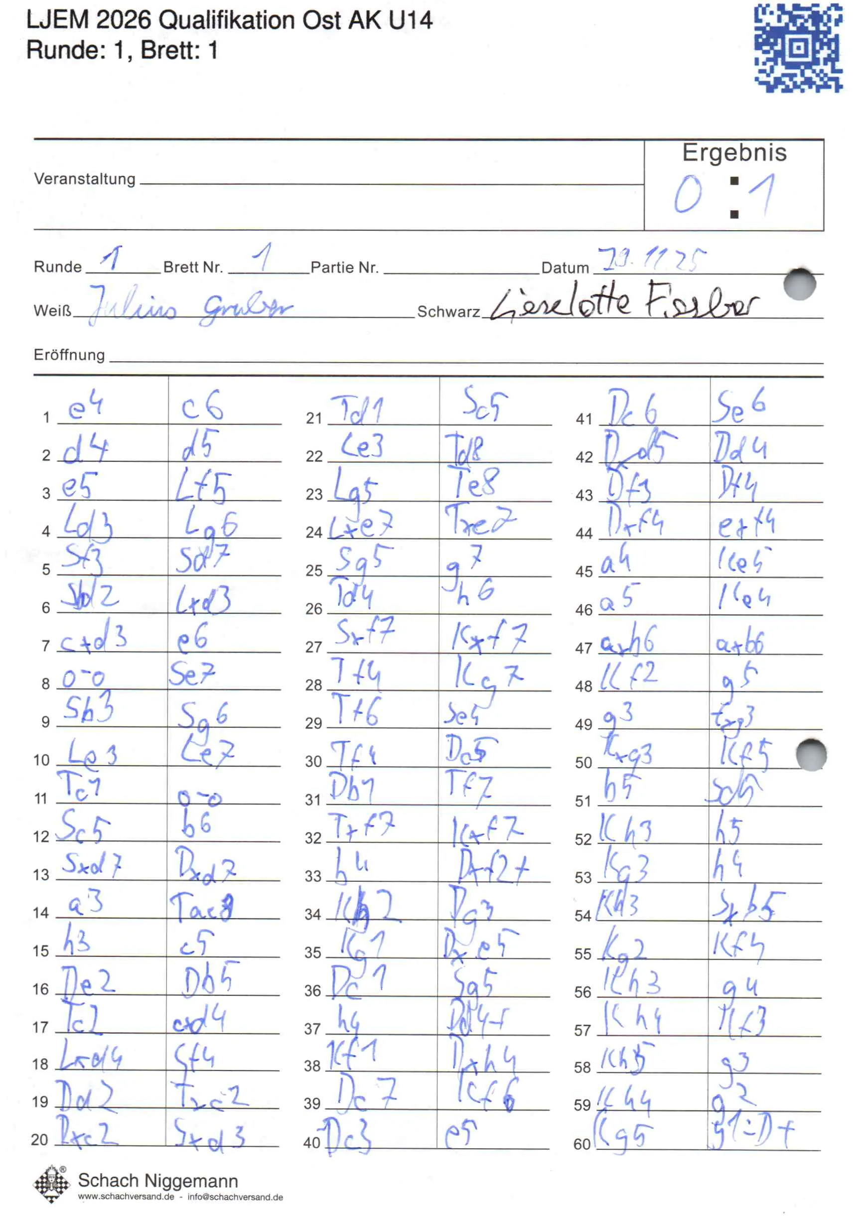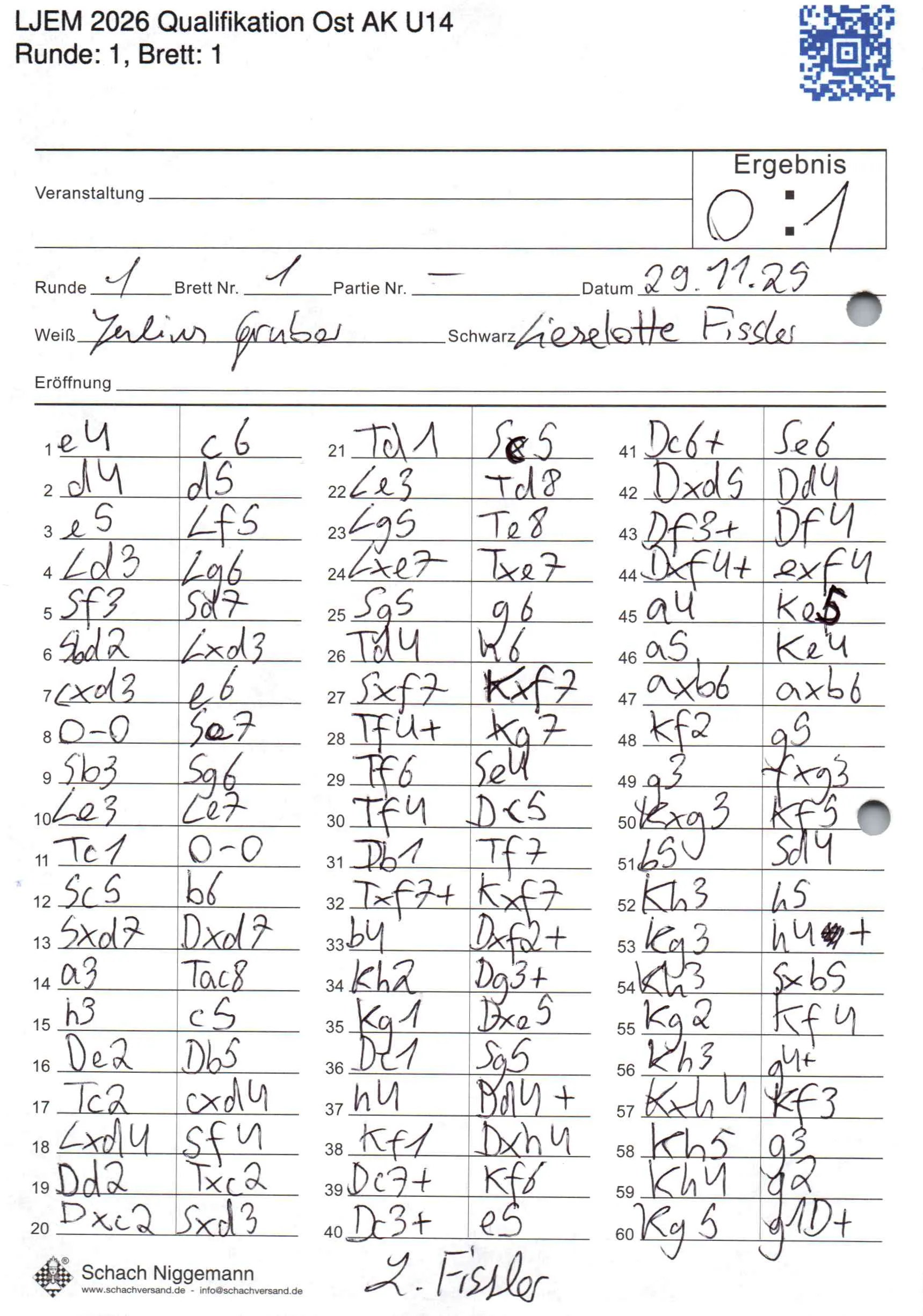 | Weiß: | Gruber, Julius | Schwarz: | Fissler, Lieselotte |
