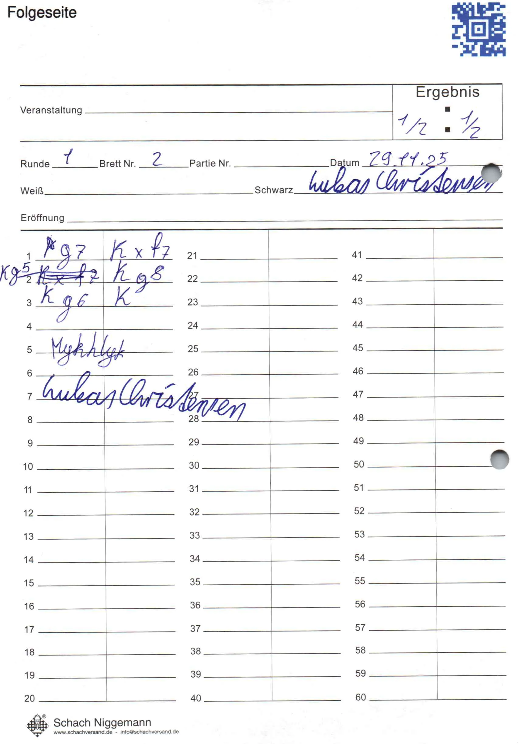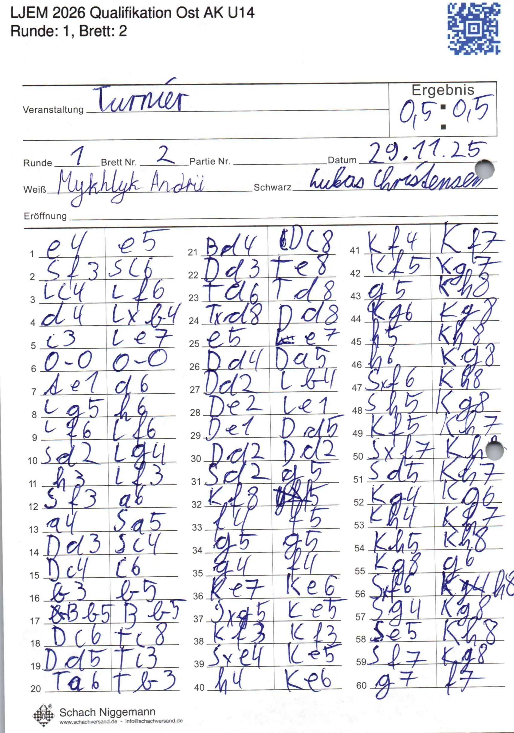 | Weiß: | Mykhlyk, Andrii | Schwarz: | Christensen, Lukas |