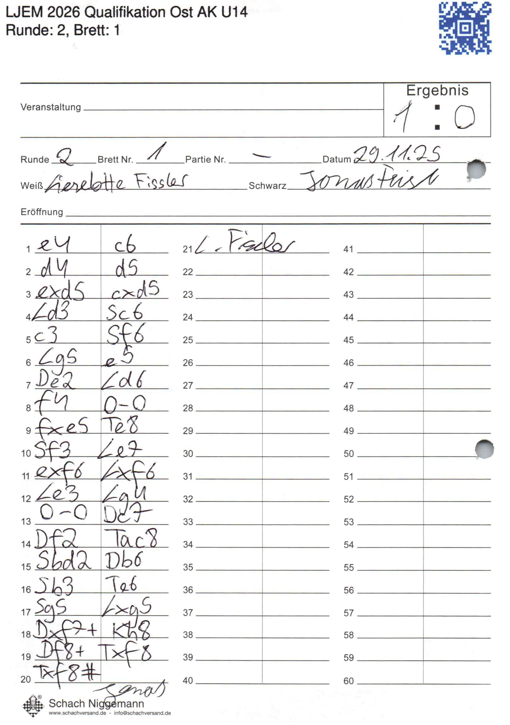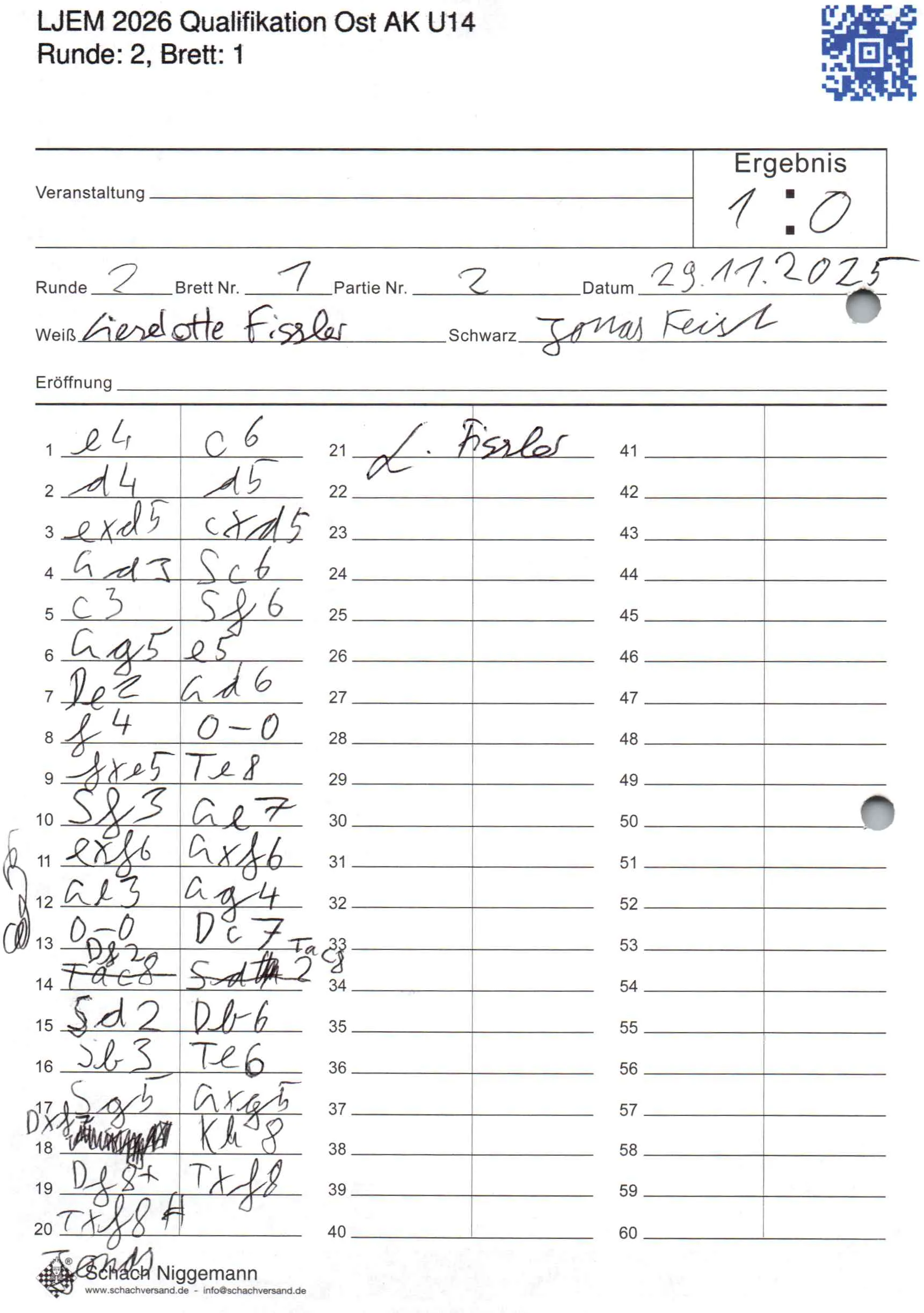 | Weiß: | Fissler, Lieselotte | Schwarz: | Feist, Jonas |