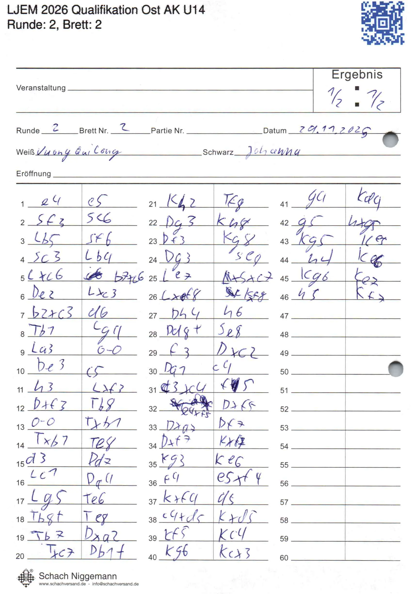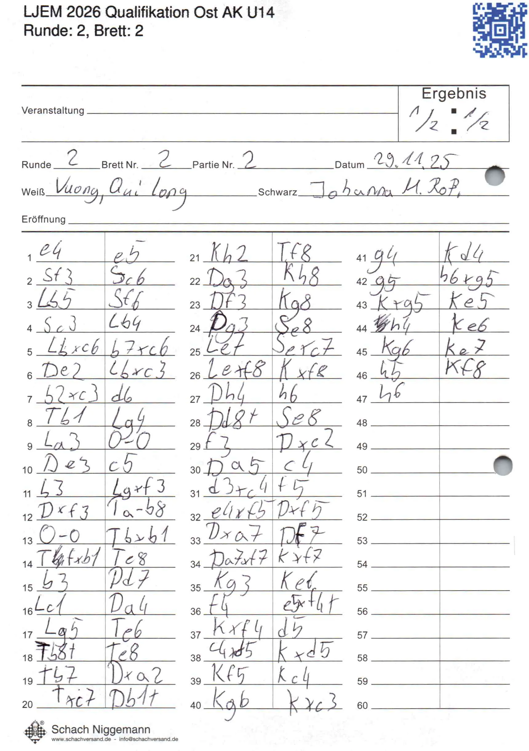 | Weiß: | Vuong, Qui Long | Schwarz: | Roßmann, Johanna Maria |