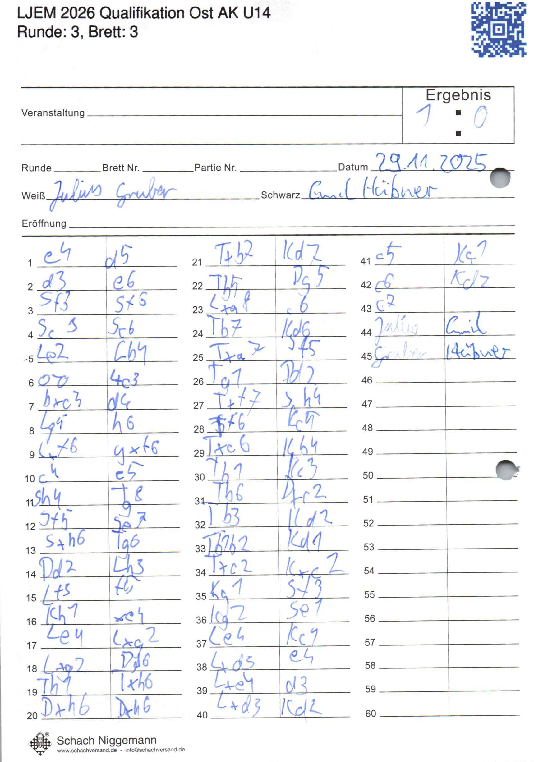 | Weiß: | Gruber, Julius | Schwarz: | Hübner, Emil |