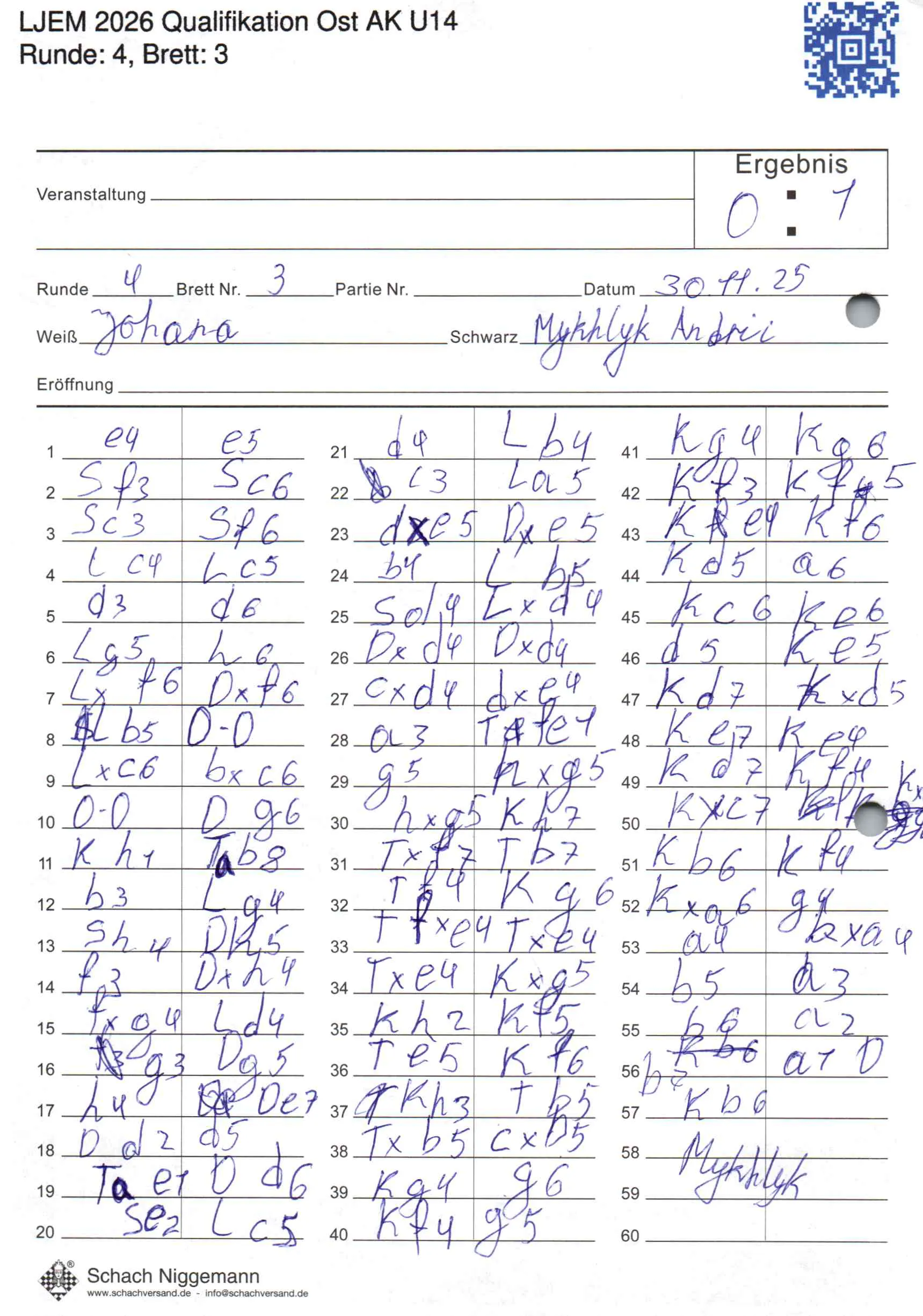 | Weiß: | Roßmann, Johanna Maria | Schwarz: | Mykhlyk, Andrii |